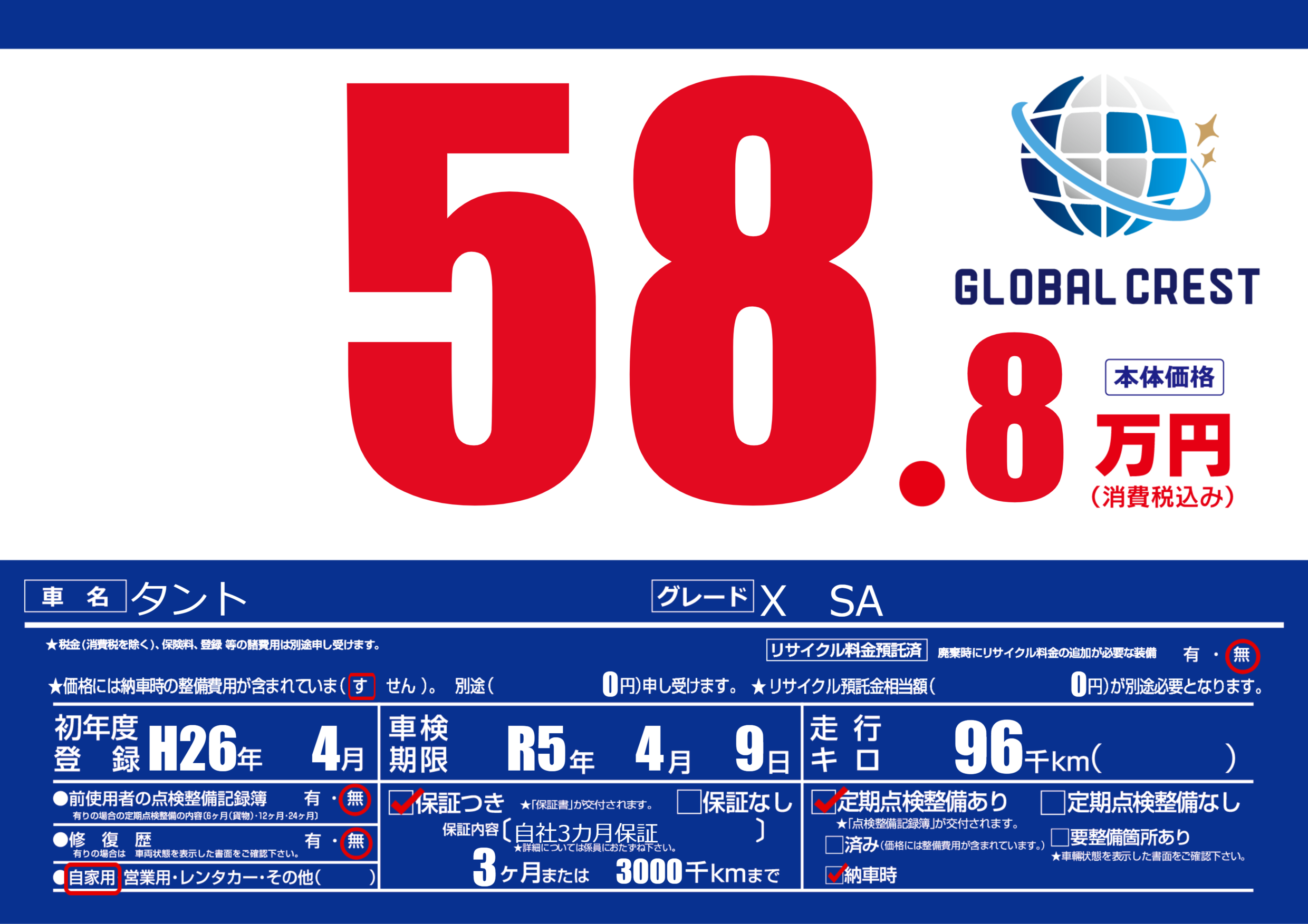 | 車検制限 | R5年 4月 9日 | ||