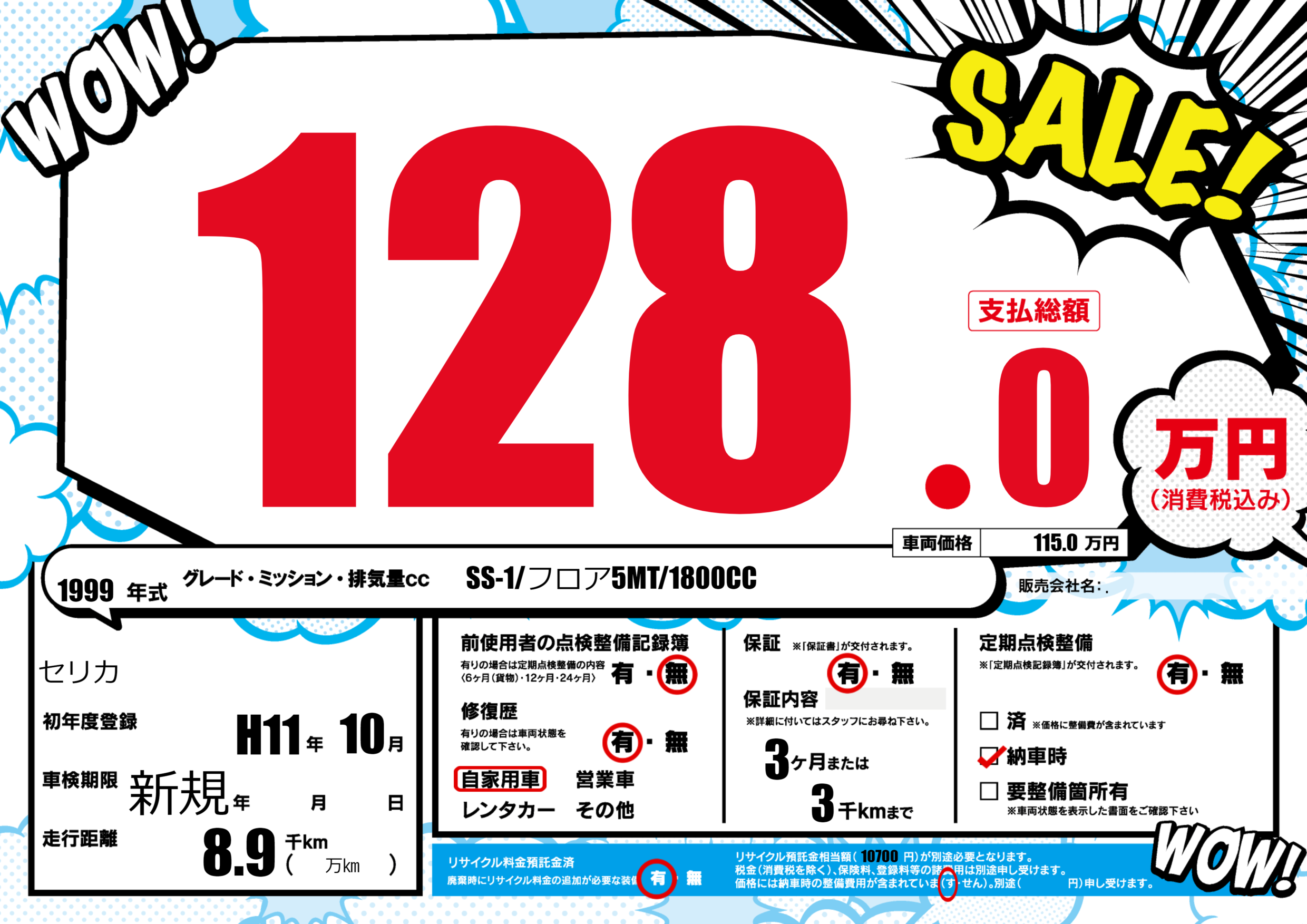 | 車名 | セリカ | グレード ミッション 排気量 |