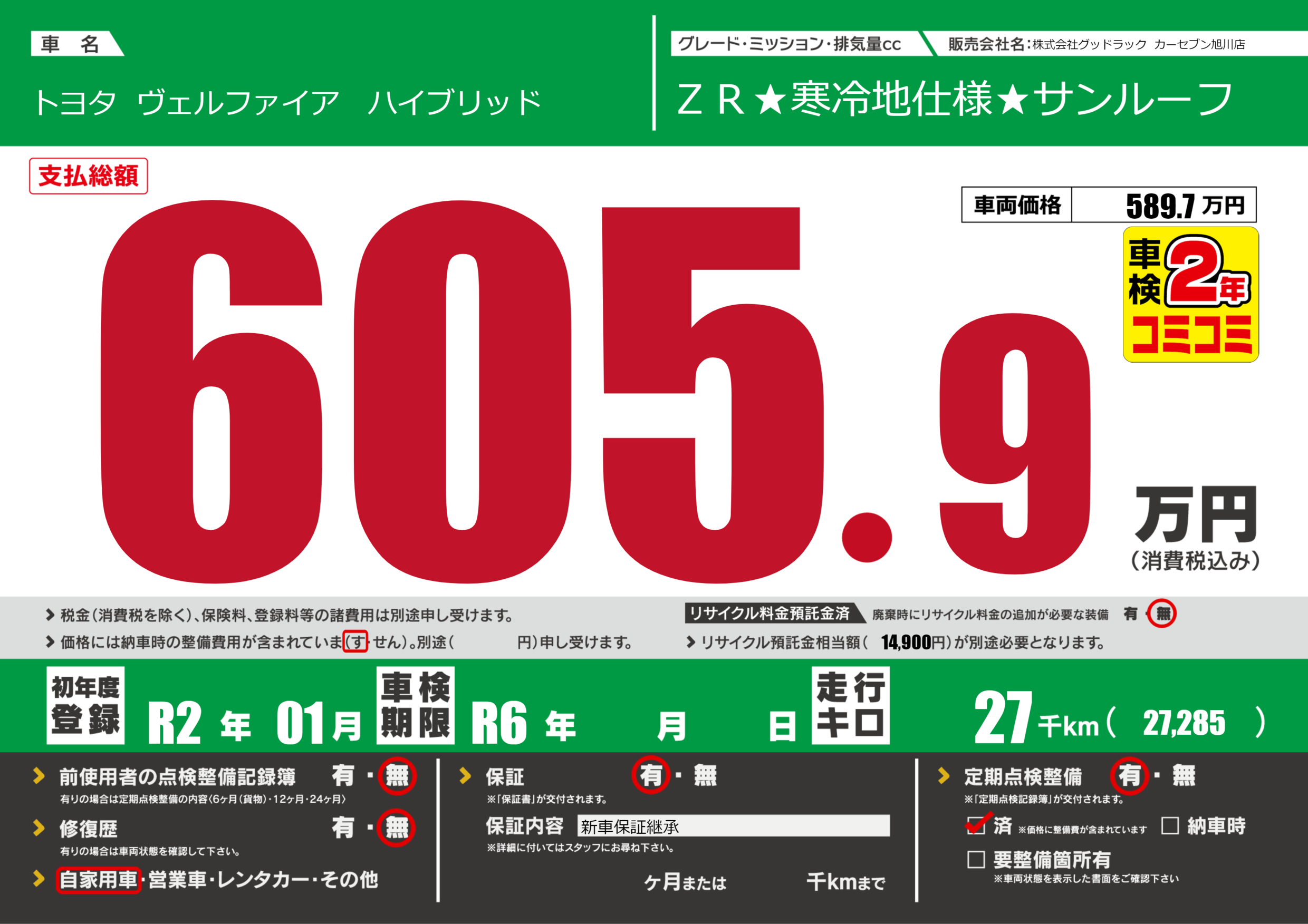 | 定期点検整備 | 定期点検整備あり 定期点検整備済み | ||