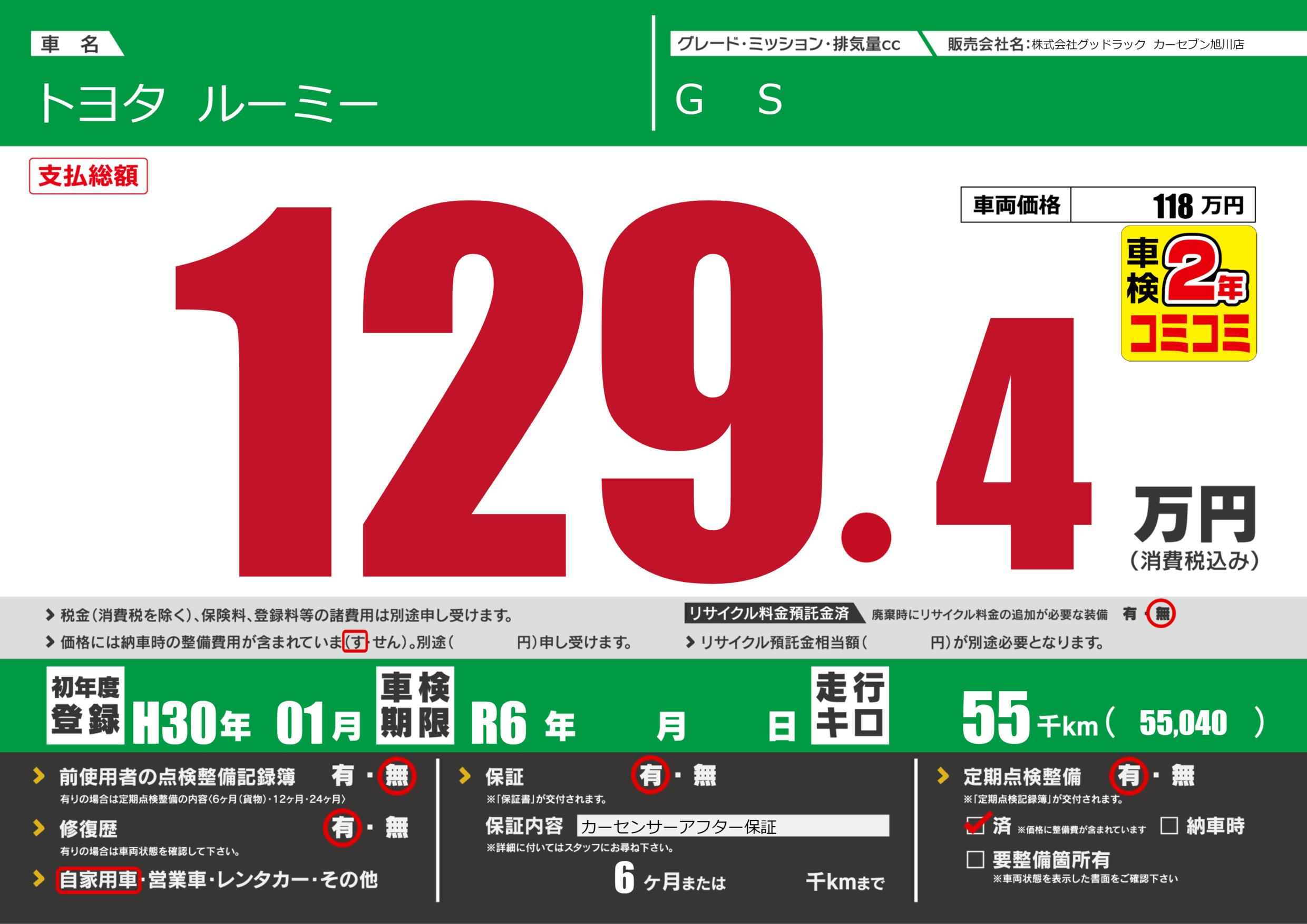 | 定期点検整備 | 定期点検整備あり 定期点検整備済み | ||