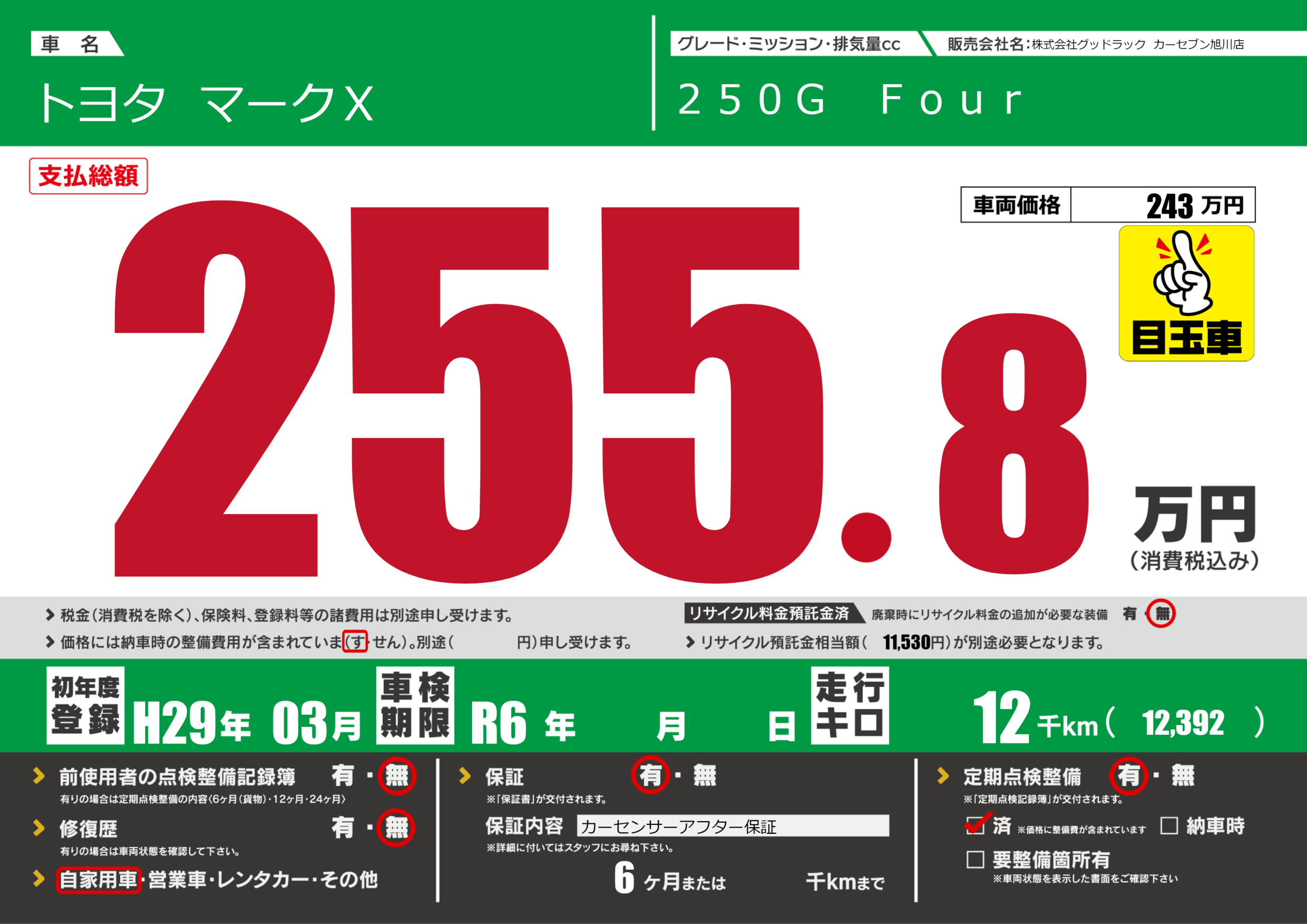 | 定期点検整備 | 定期点検整備あり 定期点検整備済み | ||