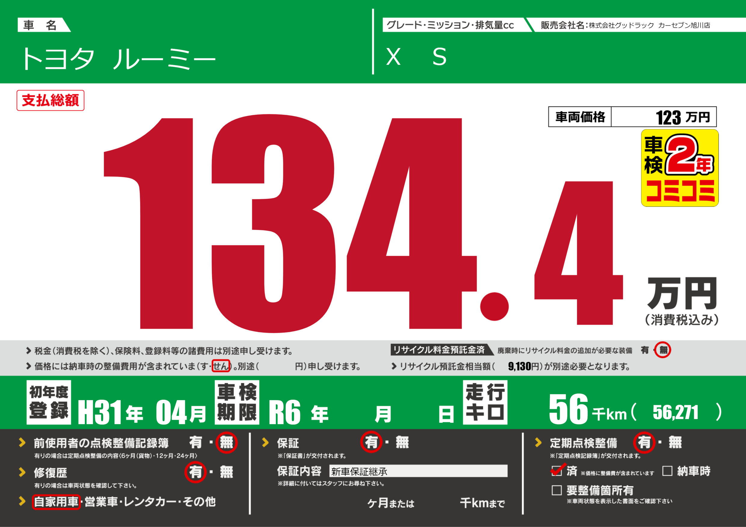 | 定期点検整備 | 定期点検整備あり 定期点検整備済み | ||