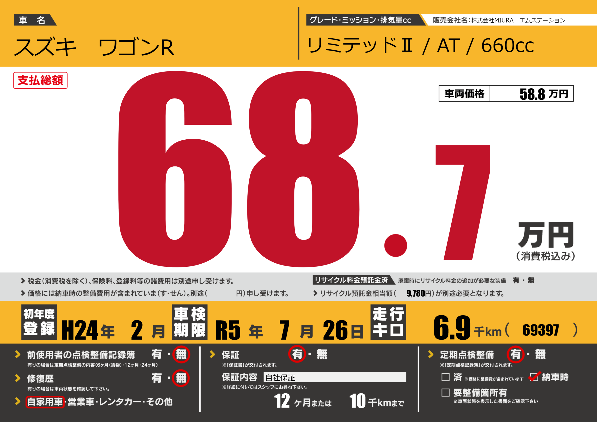 なし | 車検制限 | R5年7月26月 |