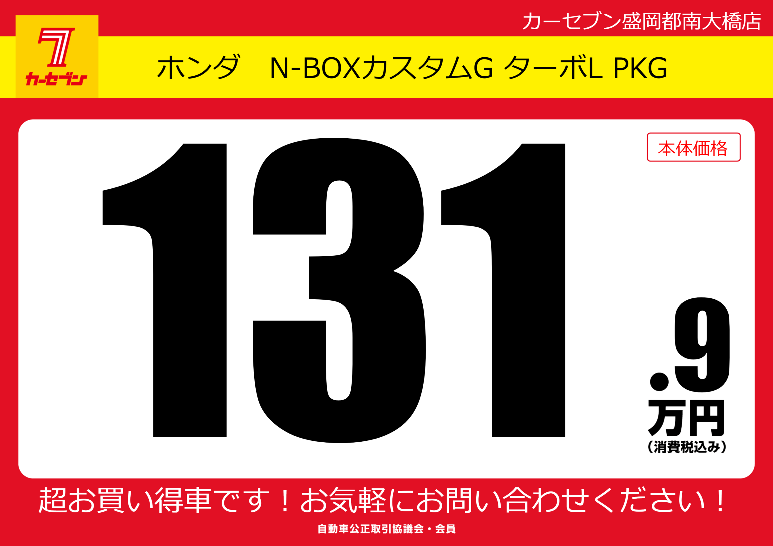 | 車名 | ホンダ N-BOXカスタムG ターボL PKG | グレード ミッション 排気量 |