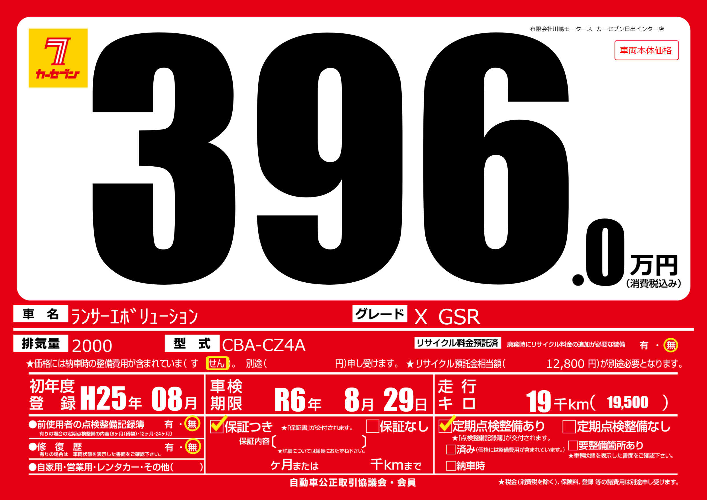 | 車名 | ランサーエボリューション | グレード ミッション 排気量 |