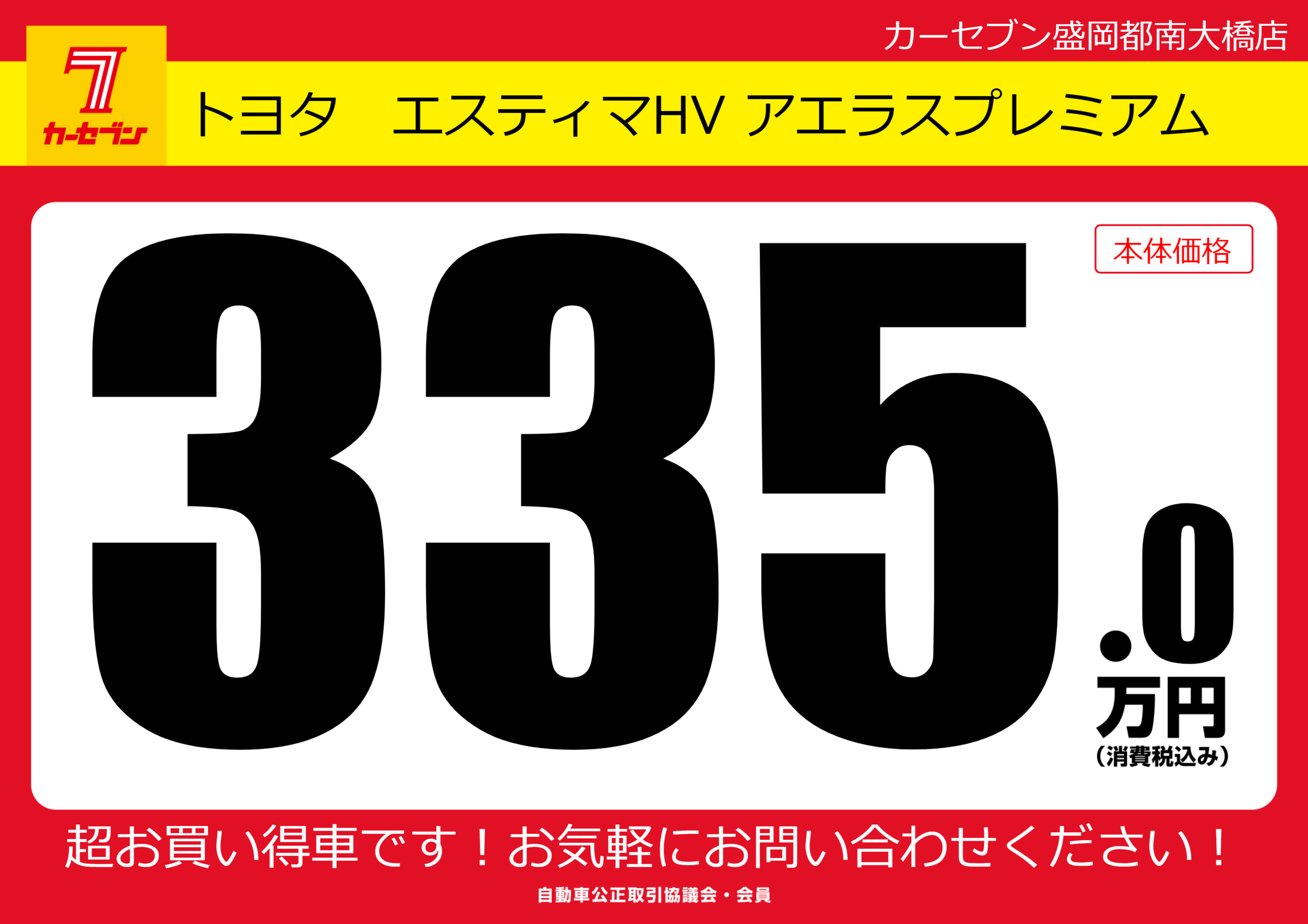 | 車名 | トヨタ エスティマHV アエラスプレミアム | グレード ミッション 排気量 |