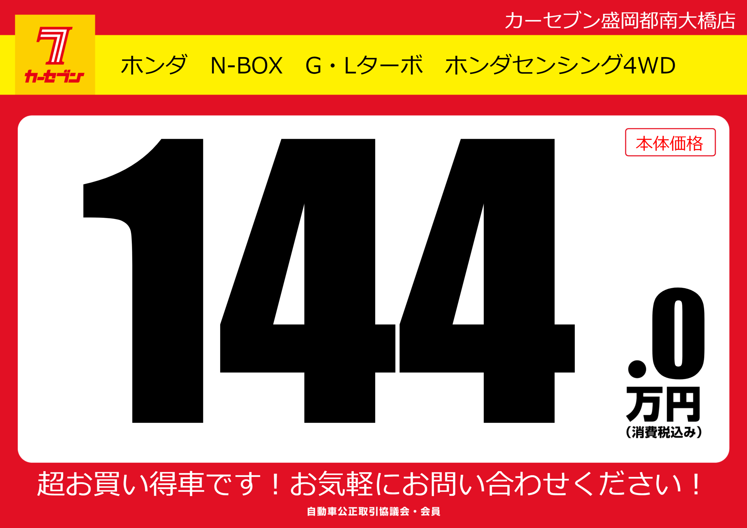| 車名 | ホンダ N-BOX G・Lターボ ホンダセンシング4WD | グレード ミッション 排気量 |