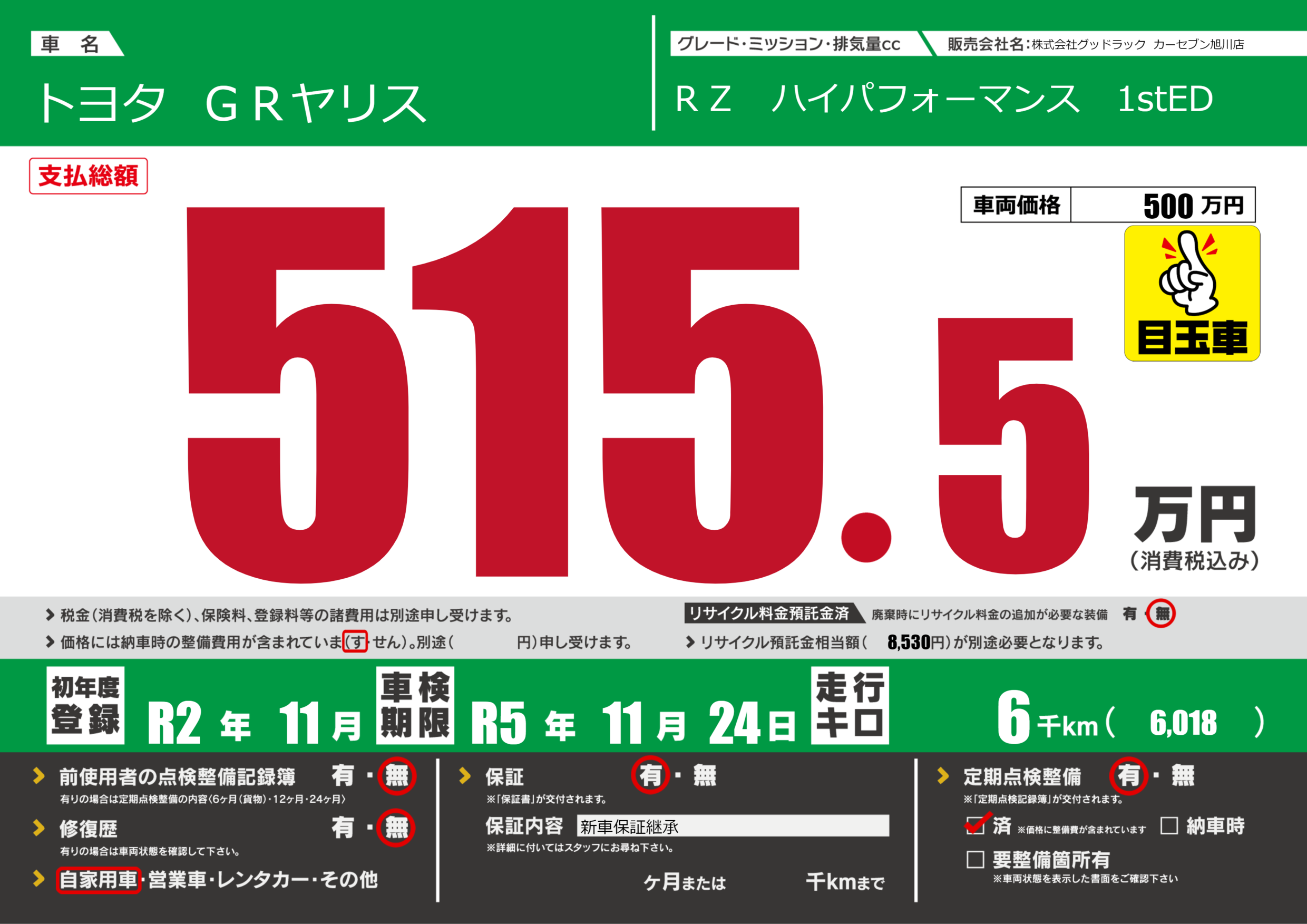 | 定期点検整備 | 定期点検整備あり 定期点検整備済み | ||