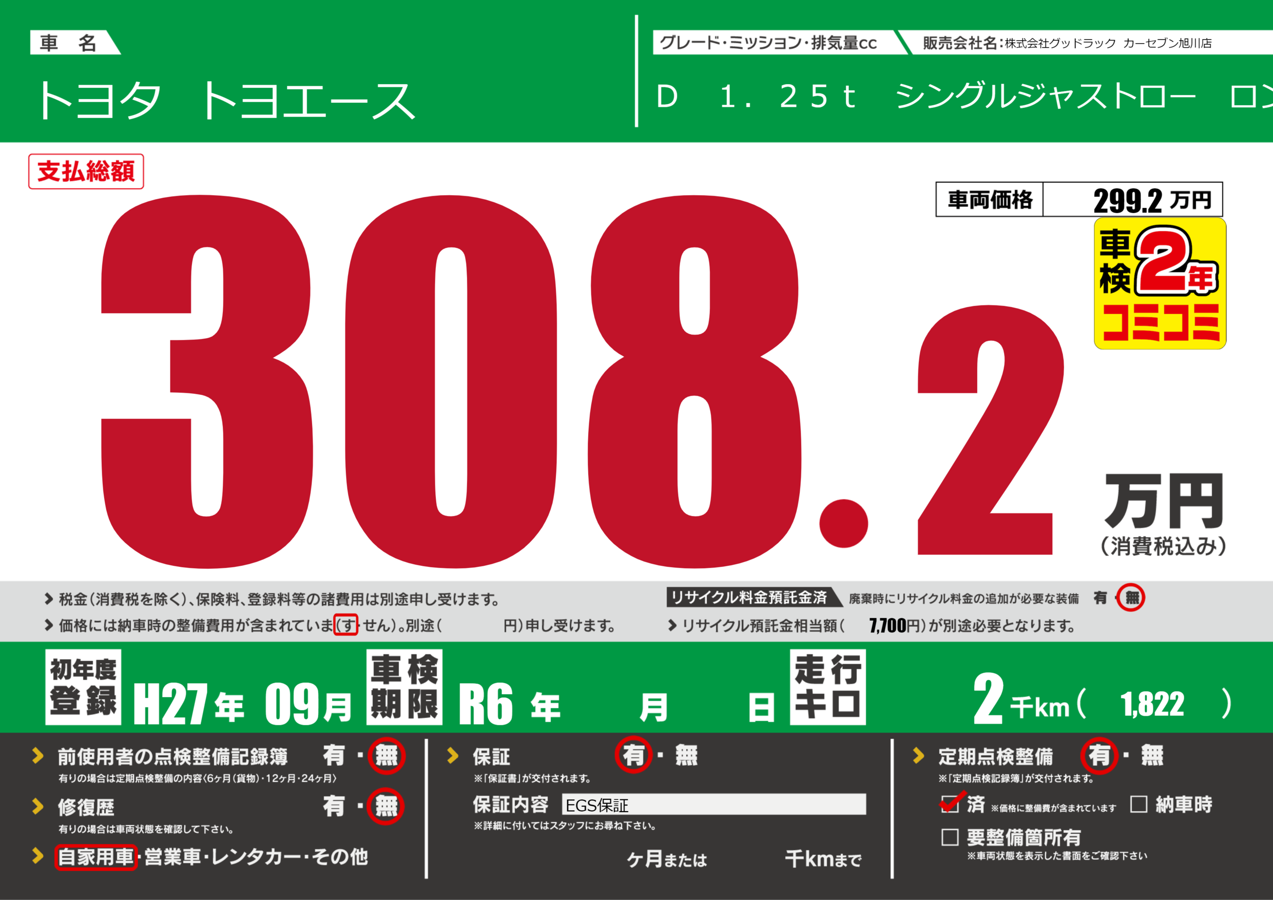 | 定期点検整備 | 定期点検整備あり 定期点検整備済み | ||