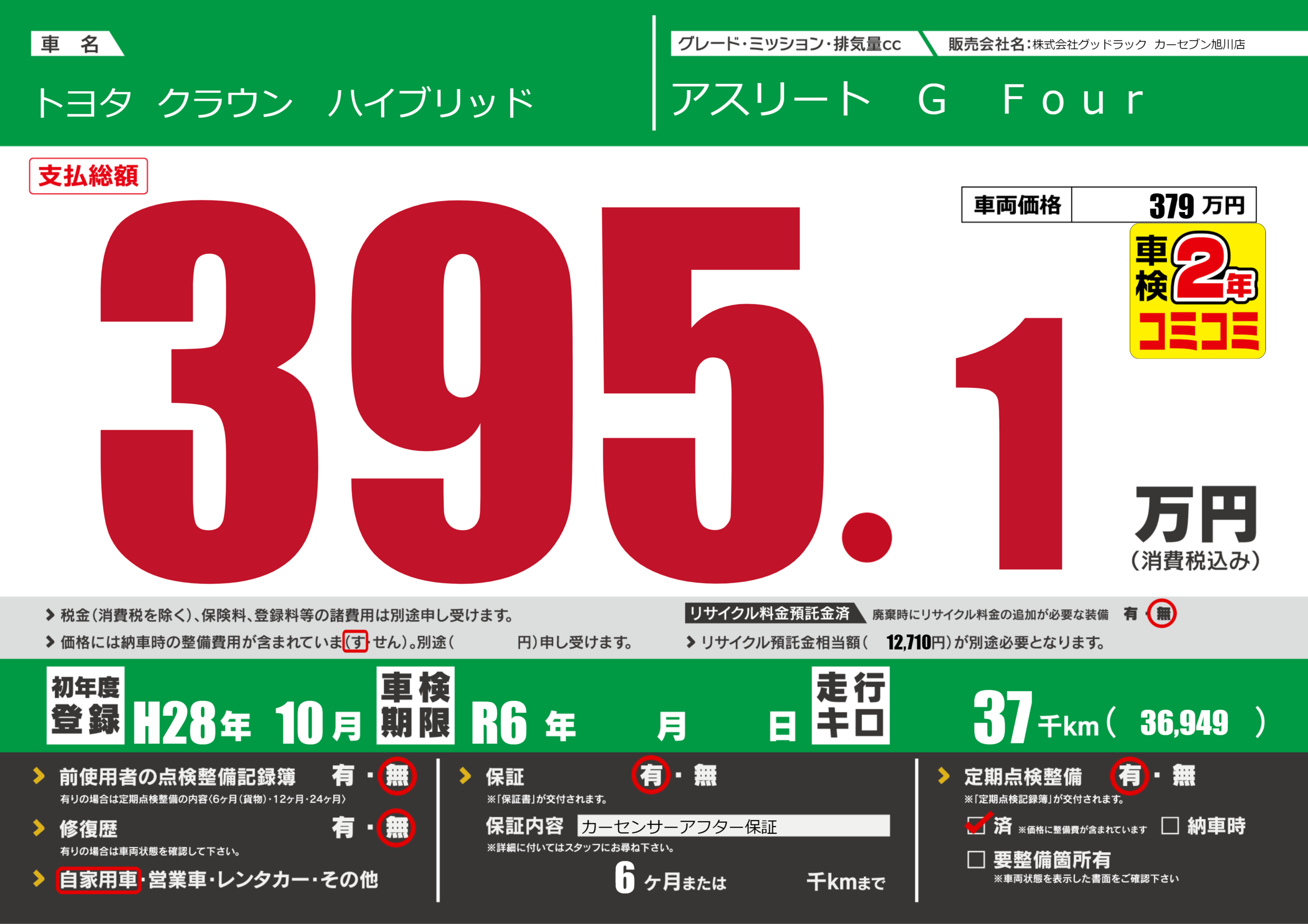 | 定期点検整備 | 定期点検整備あり 定期点検整備済み | ||