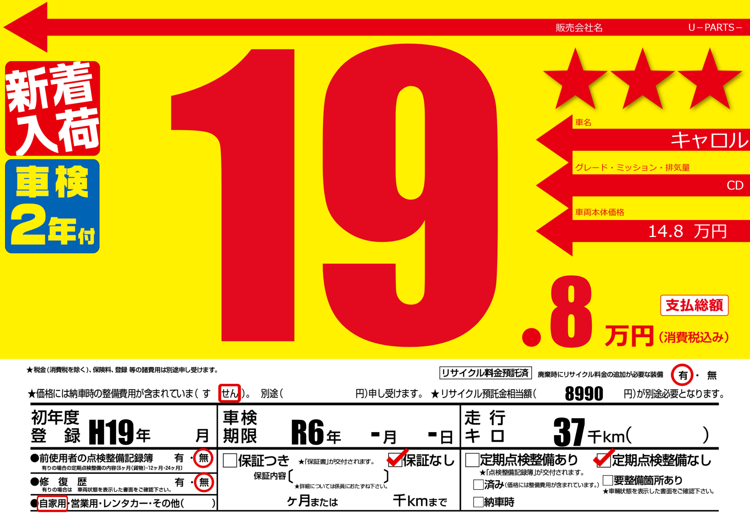| 車名 | キャロル | グレード ミッション 排気量 |