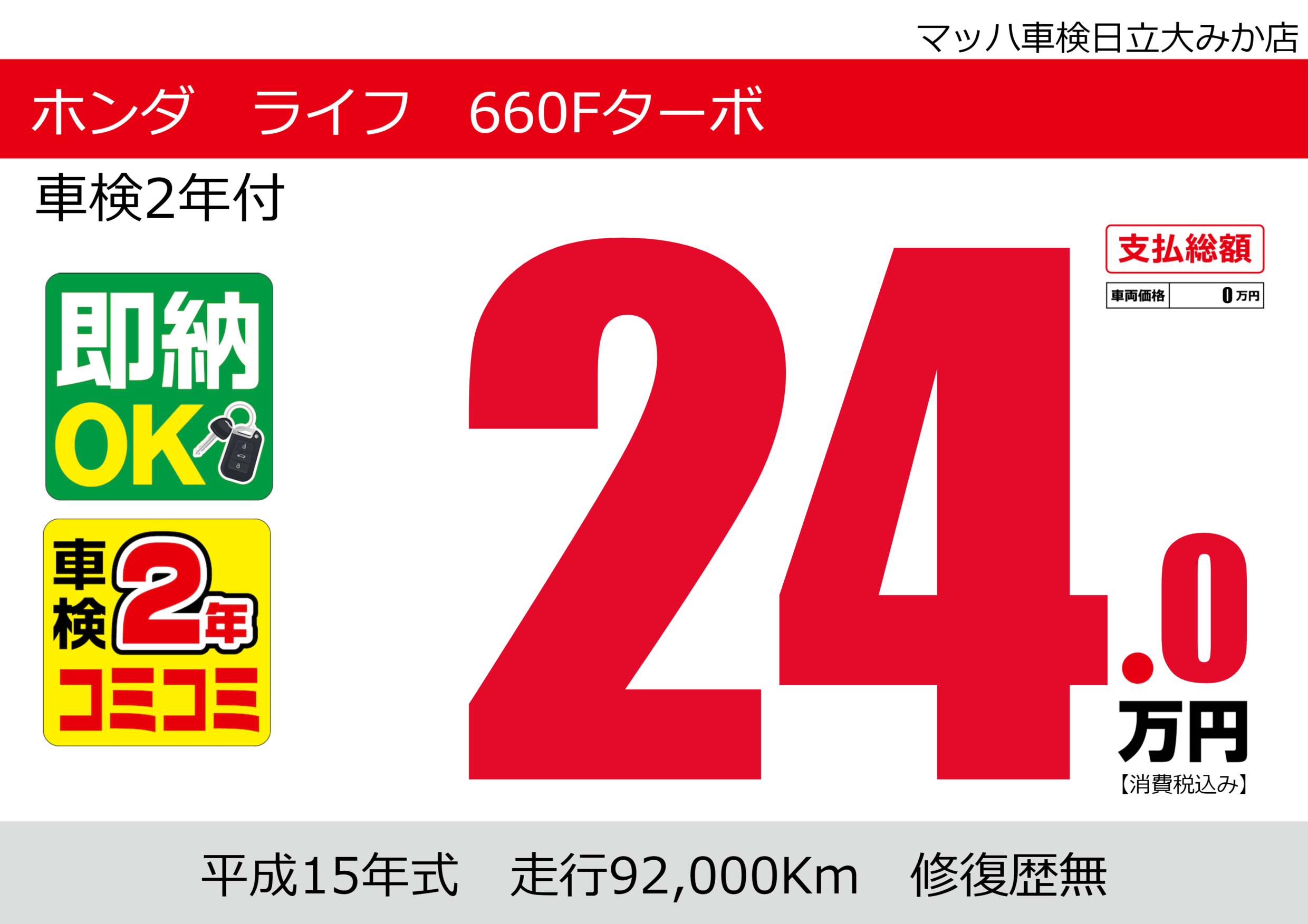 | 車名 | ホンダ ライフ 660Fターボ | グレード ミッション 排気量 |