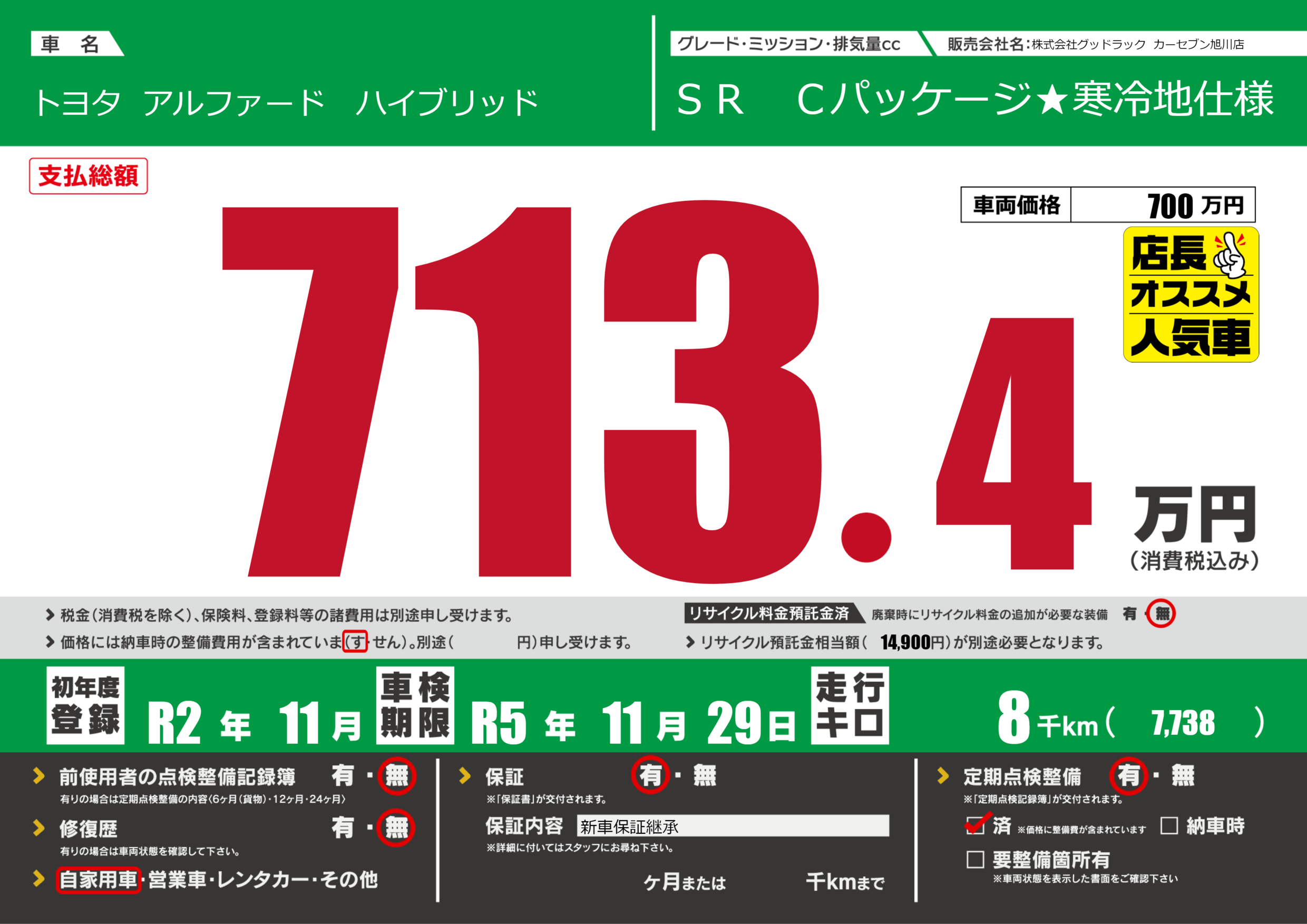 | 定期点検整備 | 定期点検整備あり 定期点検整備済み | ||