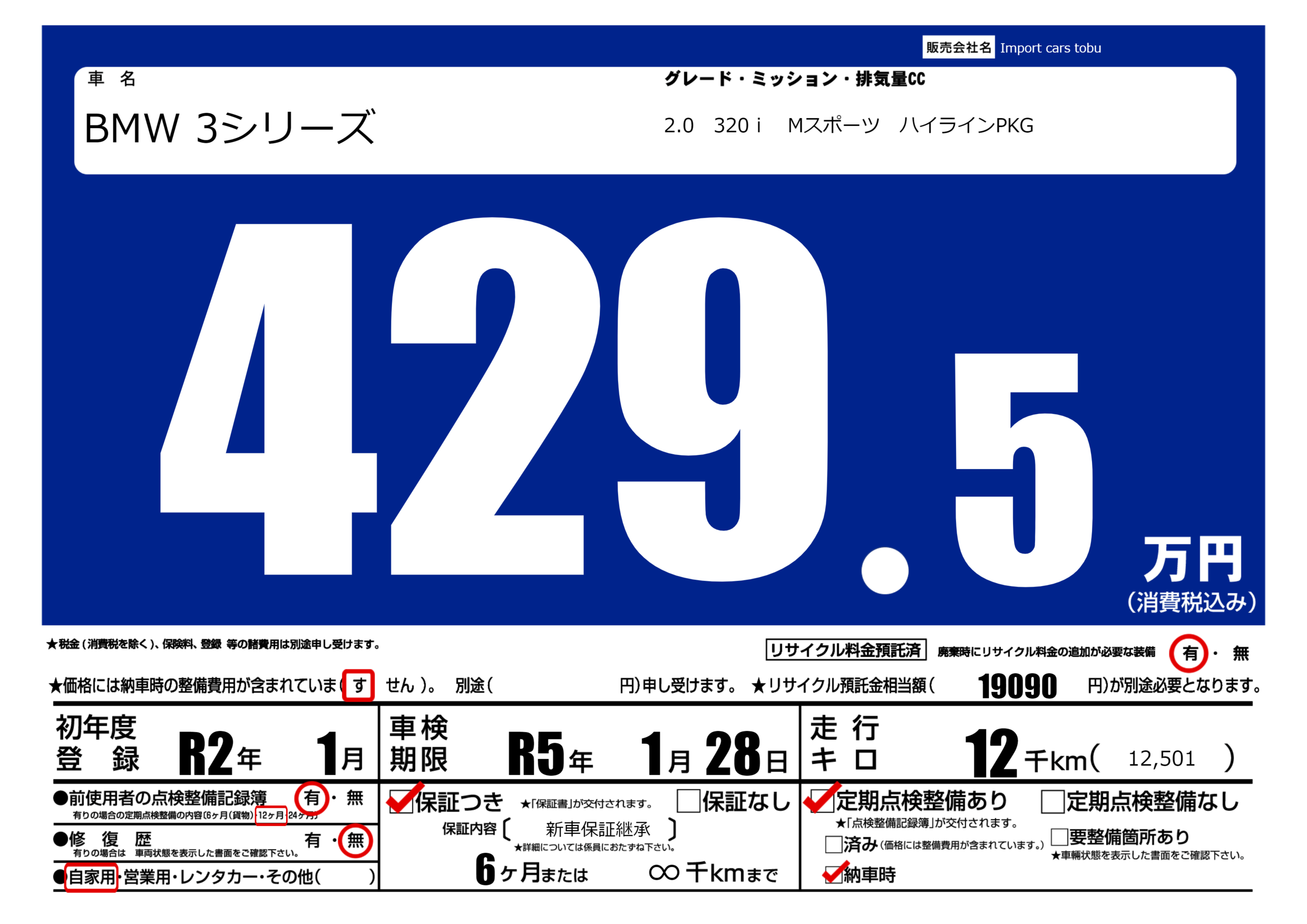 | 定期点検整備 | 定期点検整備あり 納車時あり | ||