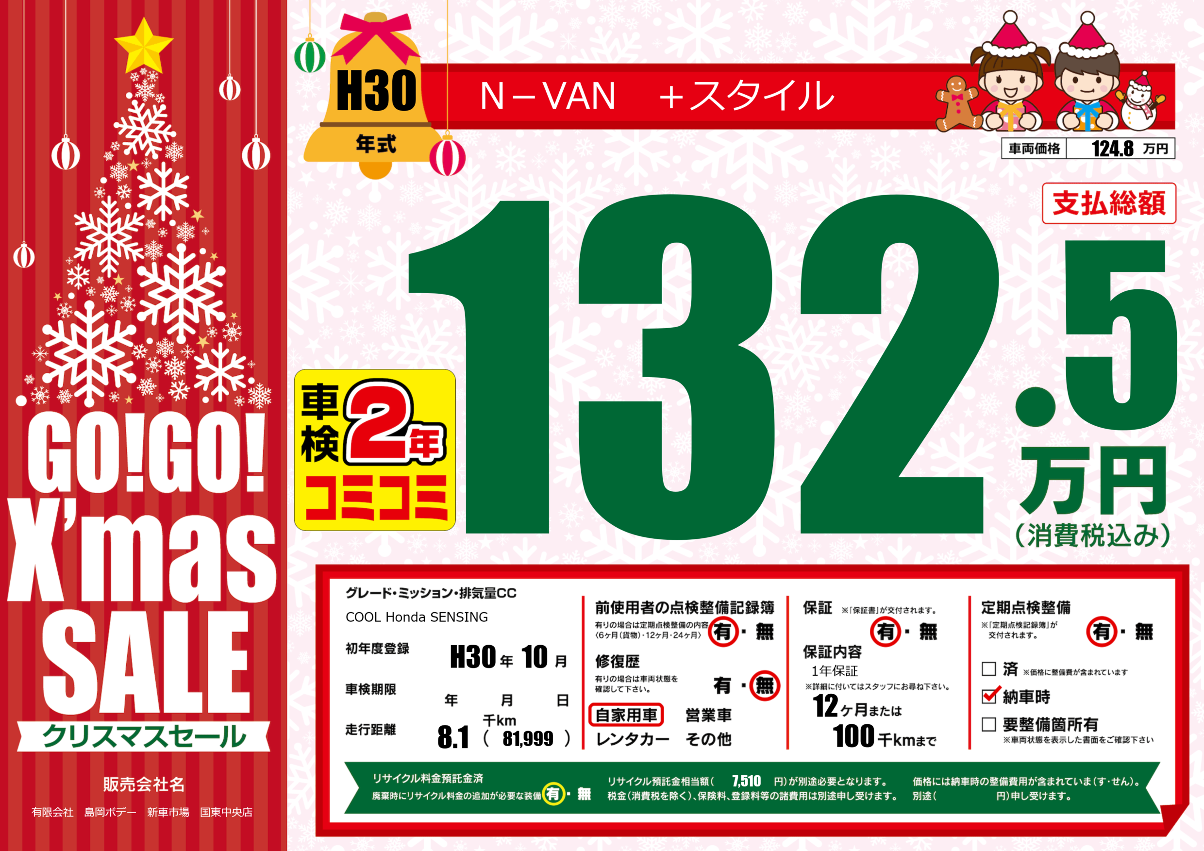 | 定期点検整備 | 定期点検整備あり 納車時あり | ||
