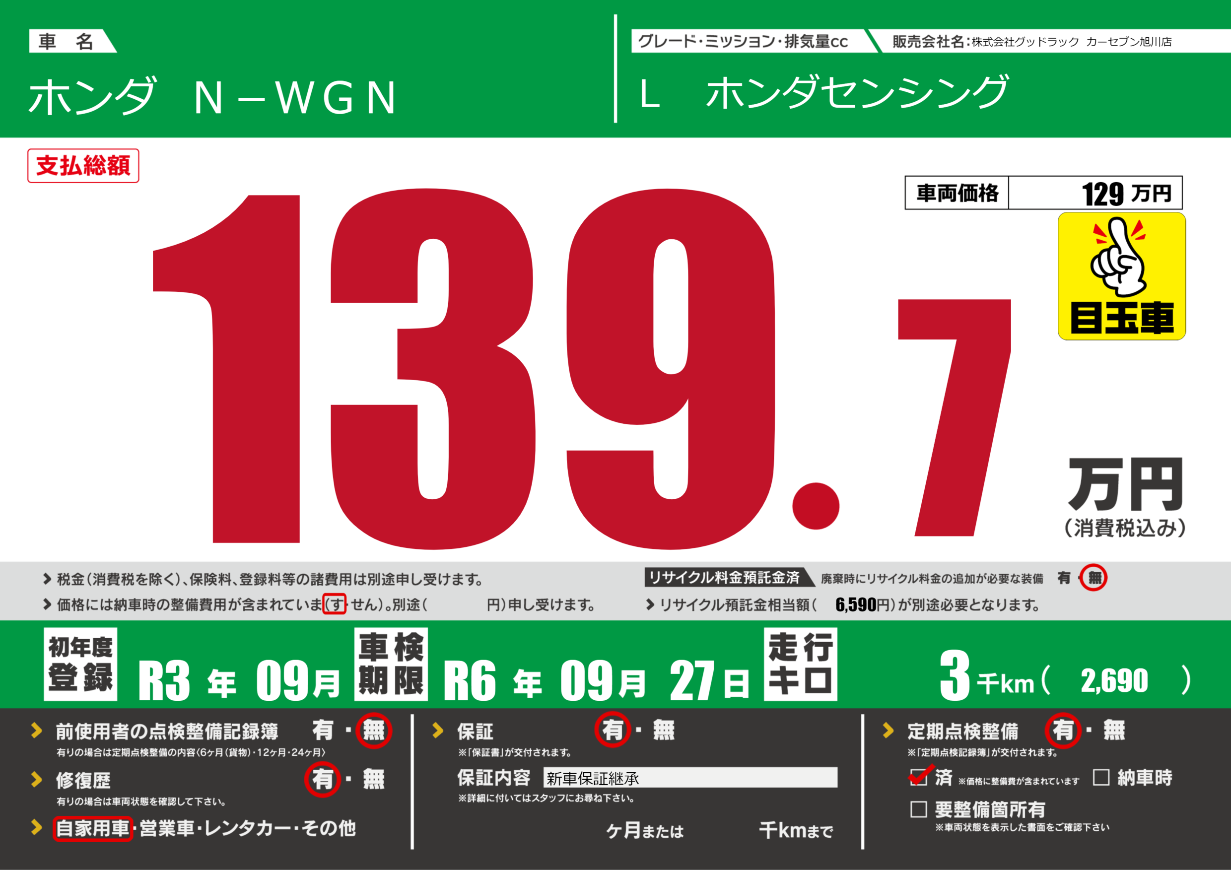 | 定期点検整備 | 定期点検整備あり 定期点検整備済み | ||