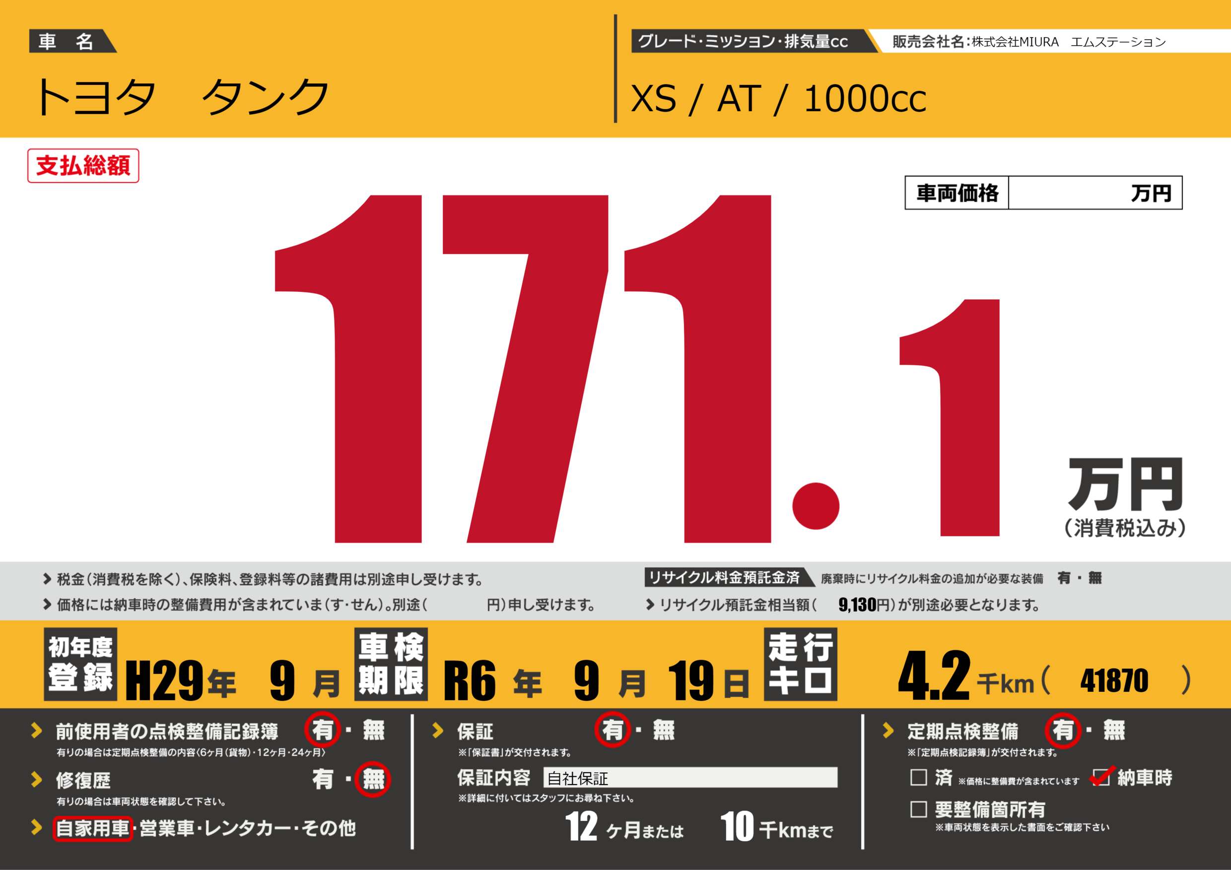 | 車検制限 | R6年 9月 19日 | ||