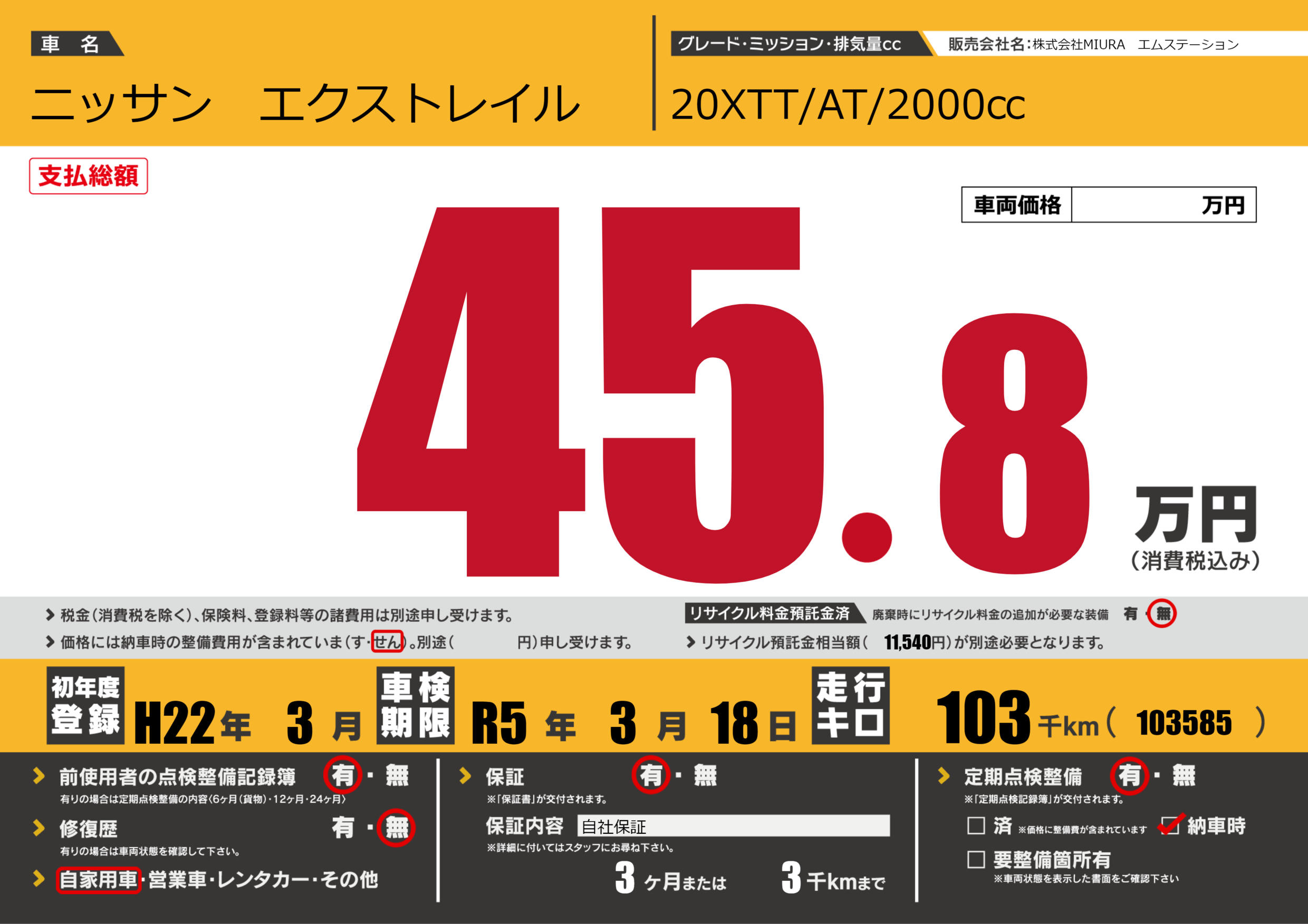初年度登録 H22年3月