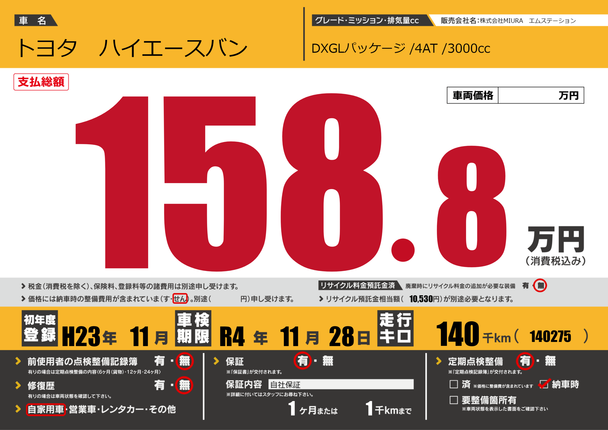 なし | 車検制限 | R4年11月28月 |