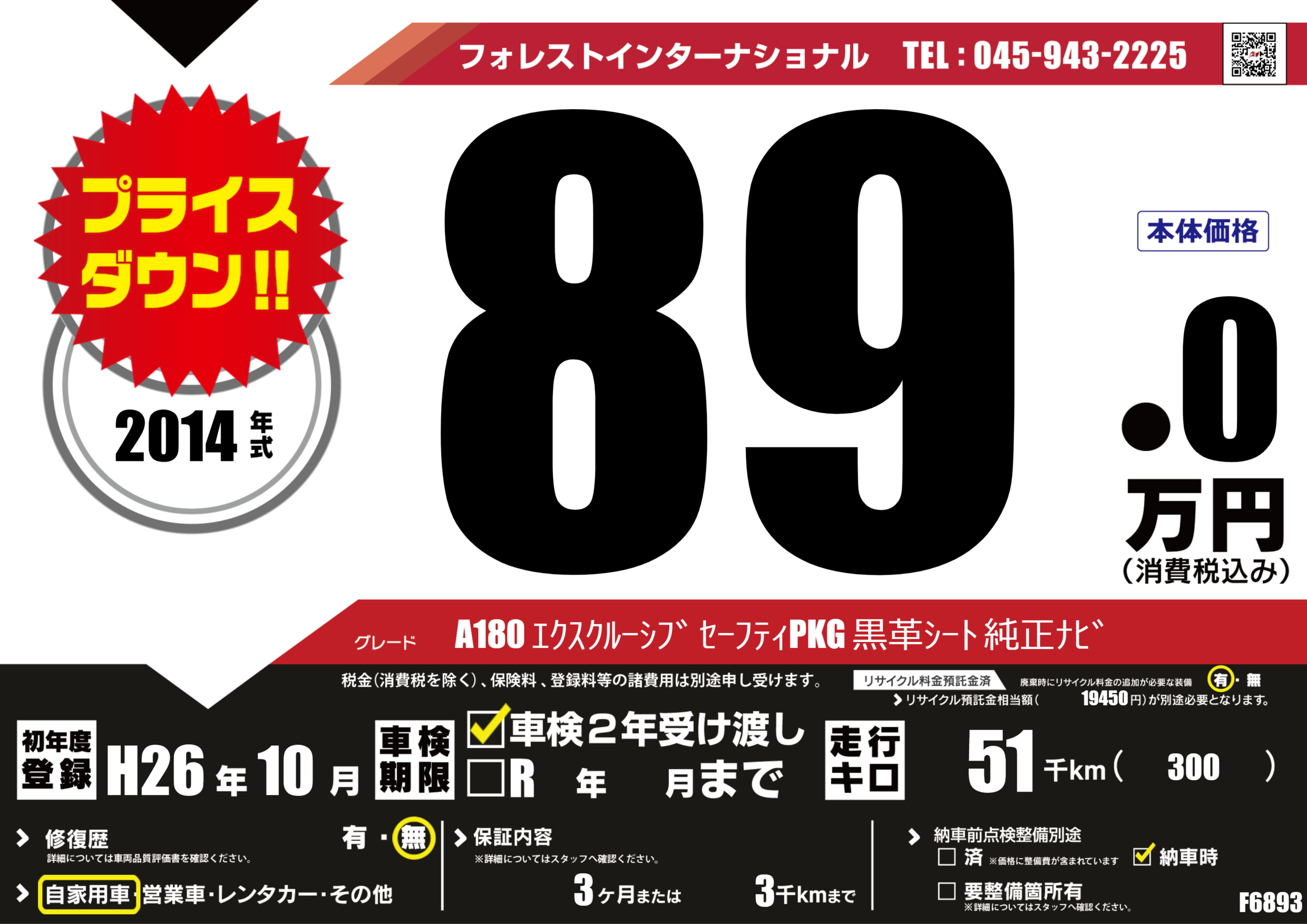 | 走行キロ | 5.1万km | 初年度登録 | H26年10月 |