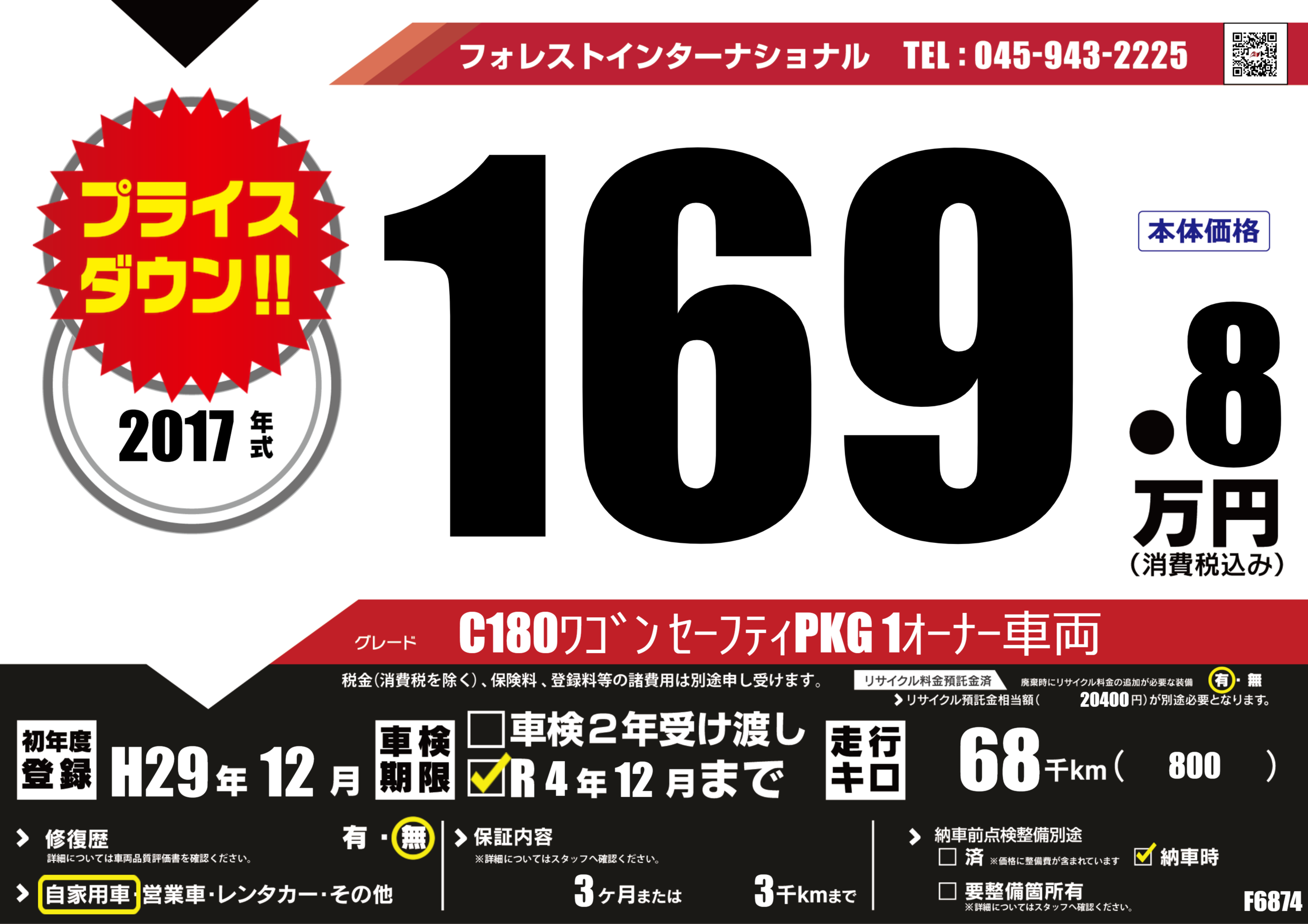 | 走行キロ | 6.8万km | 初年度登録 | H29年12月 |