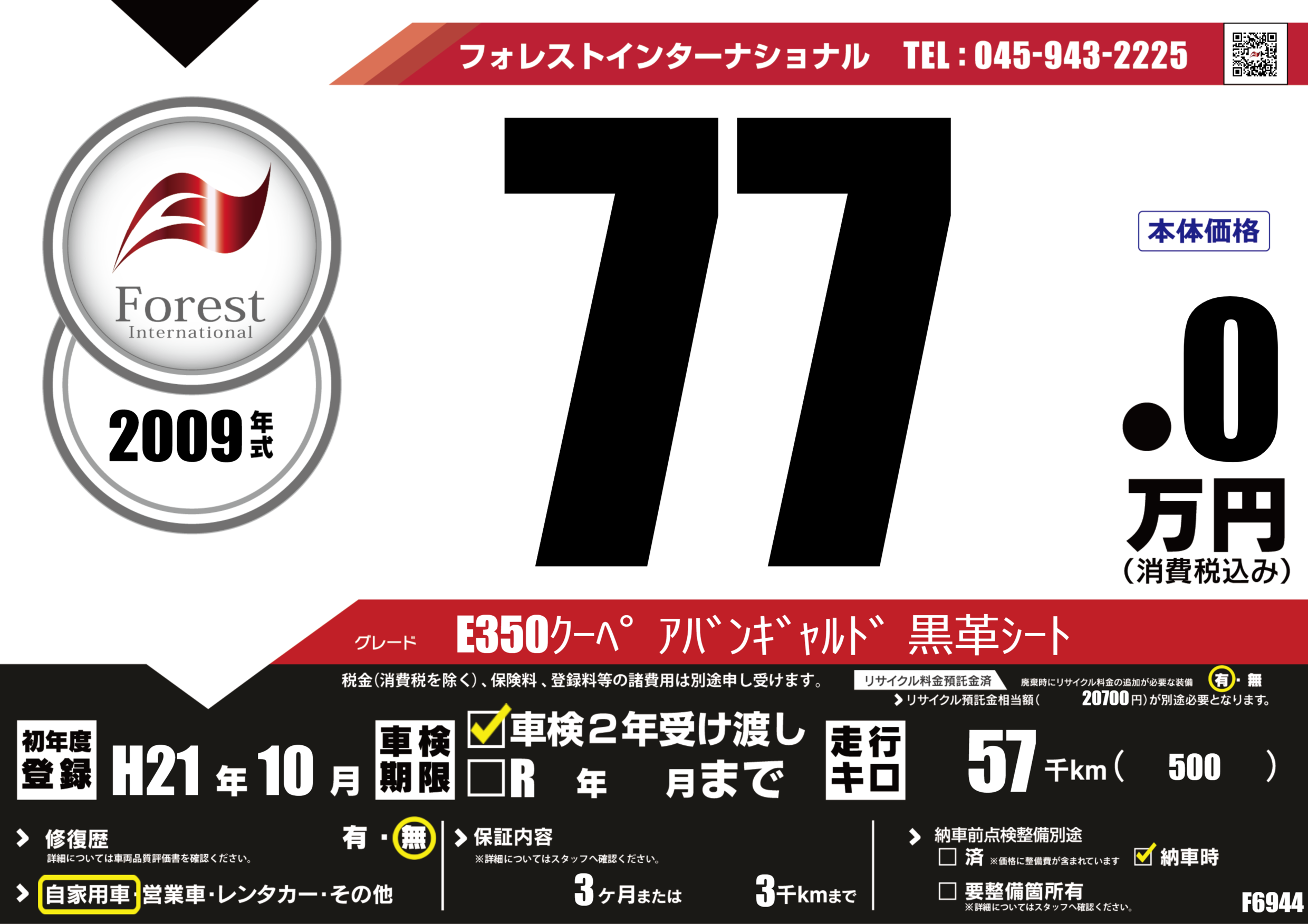 | 走行キロ | 5.7万km | 初年度登録 | H21年10月 |