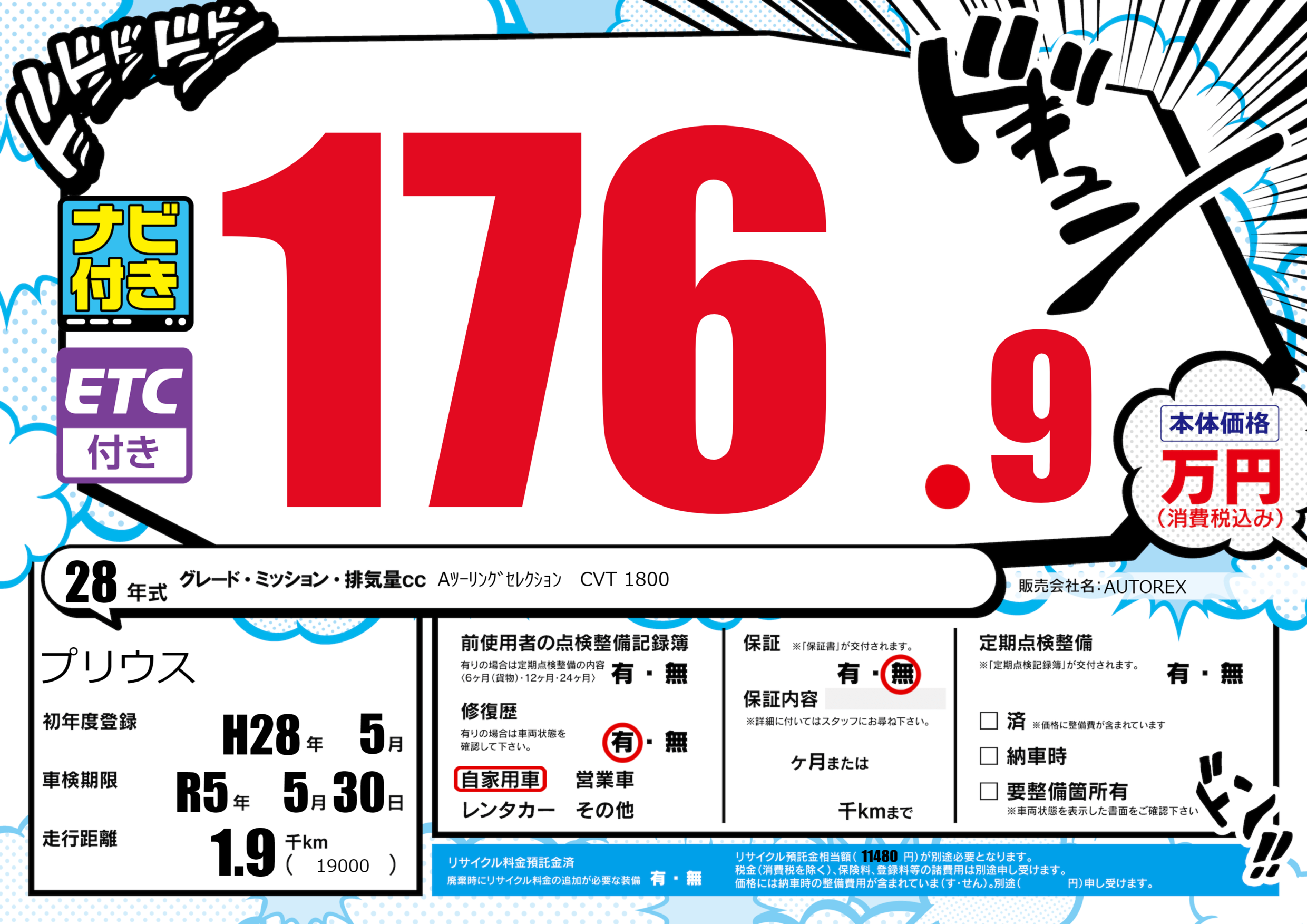| 車名 | プリウス | グレード ミッション 排気量 |