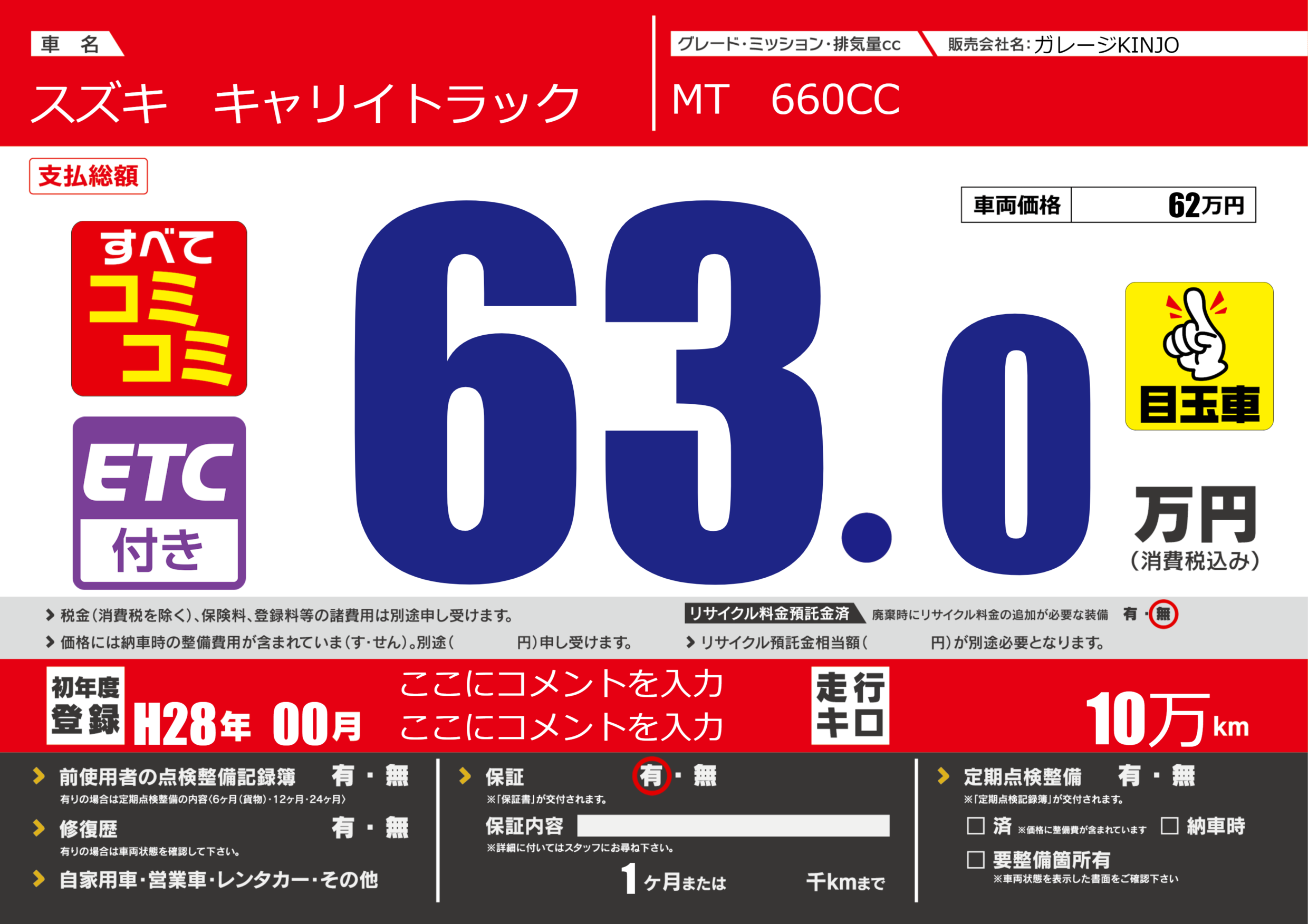 | 車検制限 | - 年 - 月 - 日 | ||