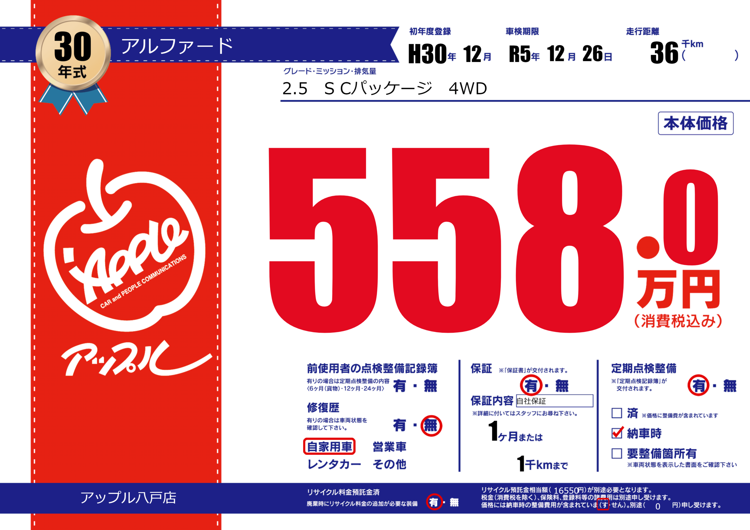 | 車名 | アルファード | グレード ミッション 排気量 |