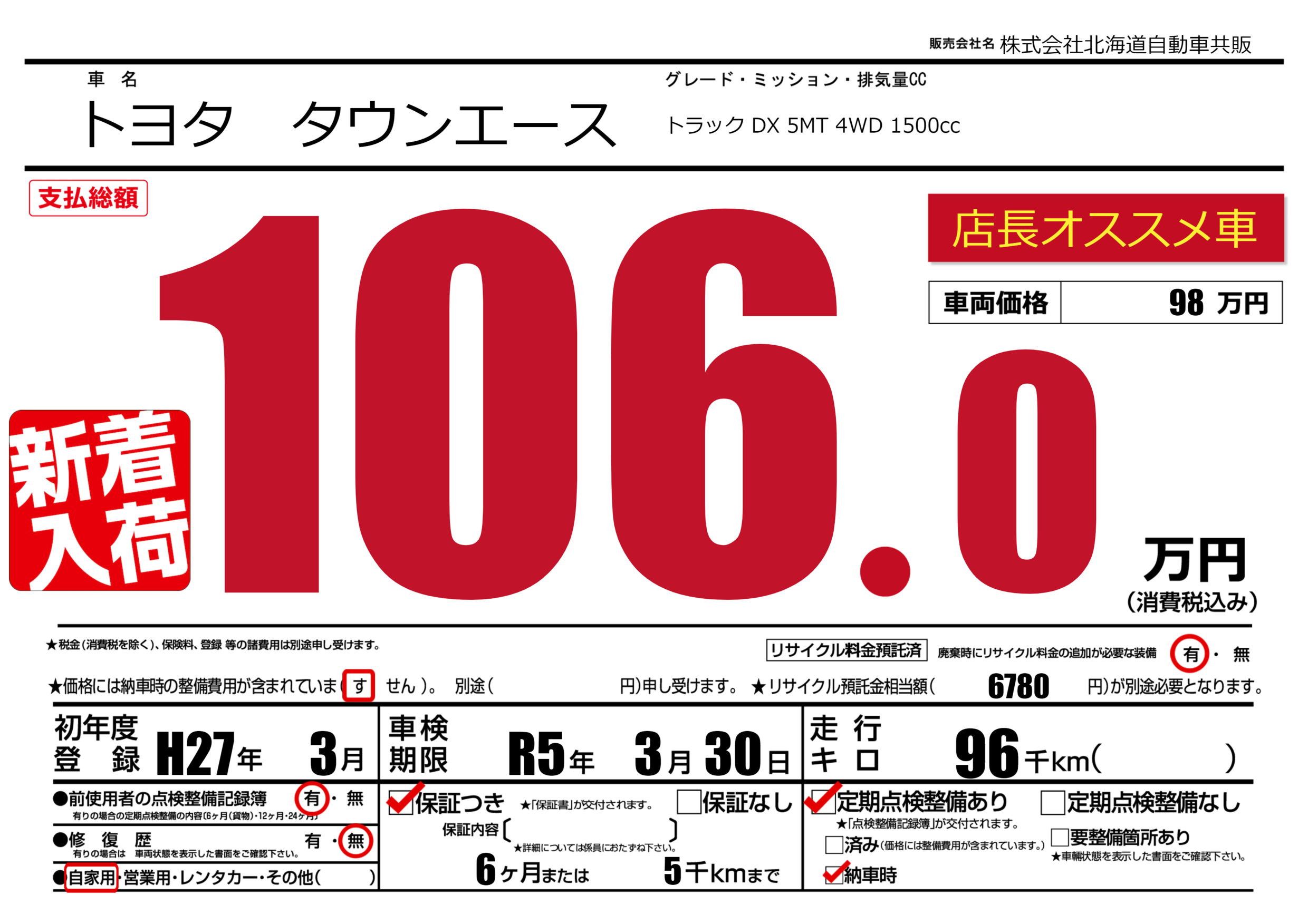 | 車名 | トヨタ タウンエース | グレード ミッション 排気量 |