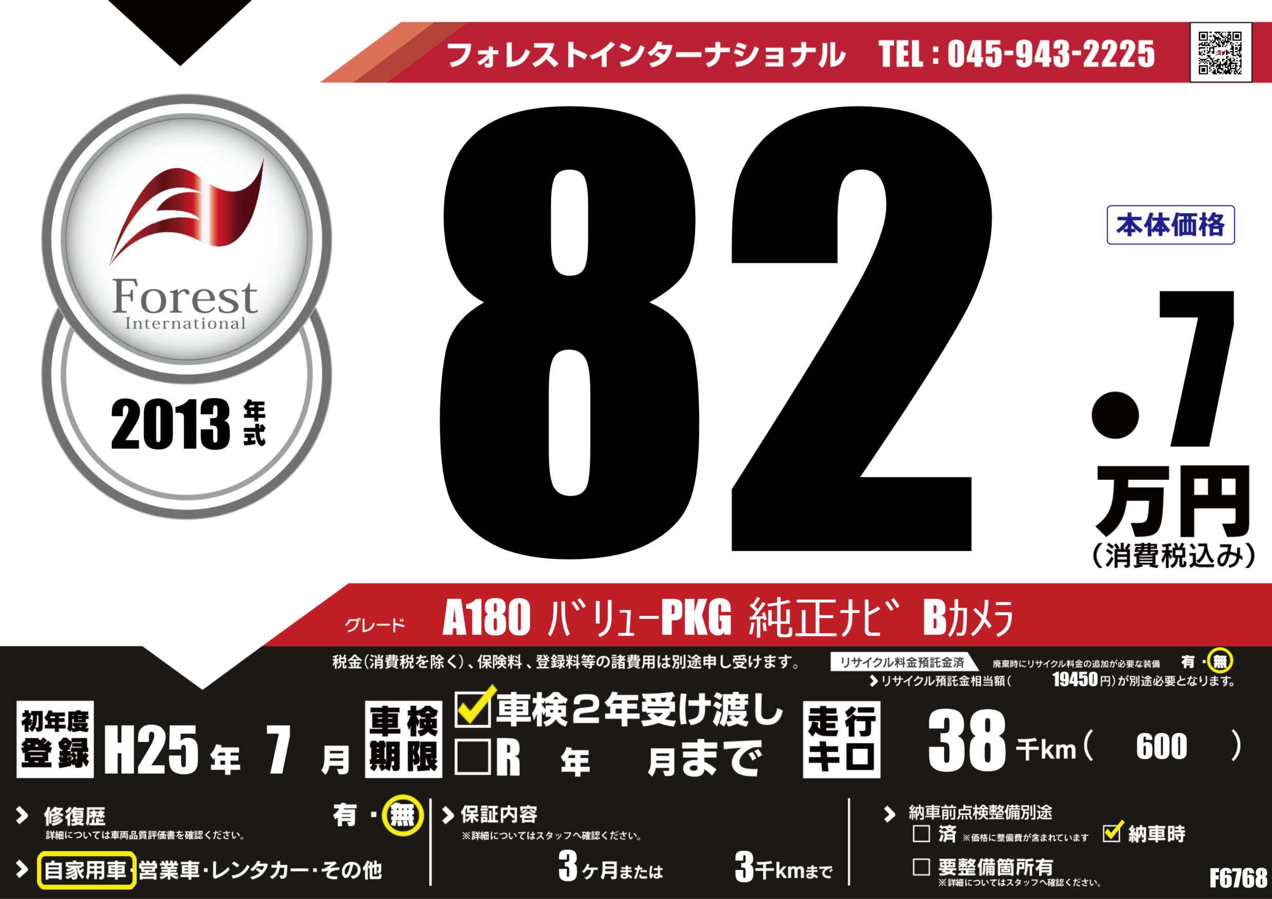 | 走行キロ | 3.8万km | 初年度登録 | H25年7月 |