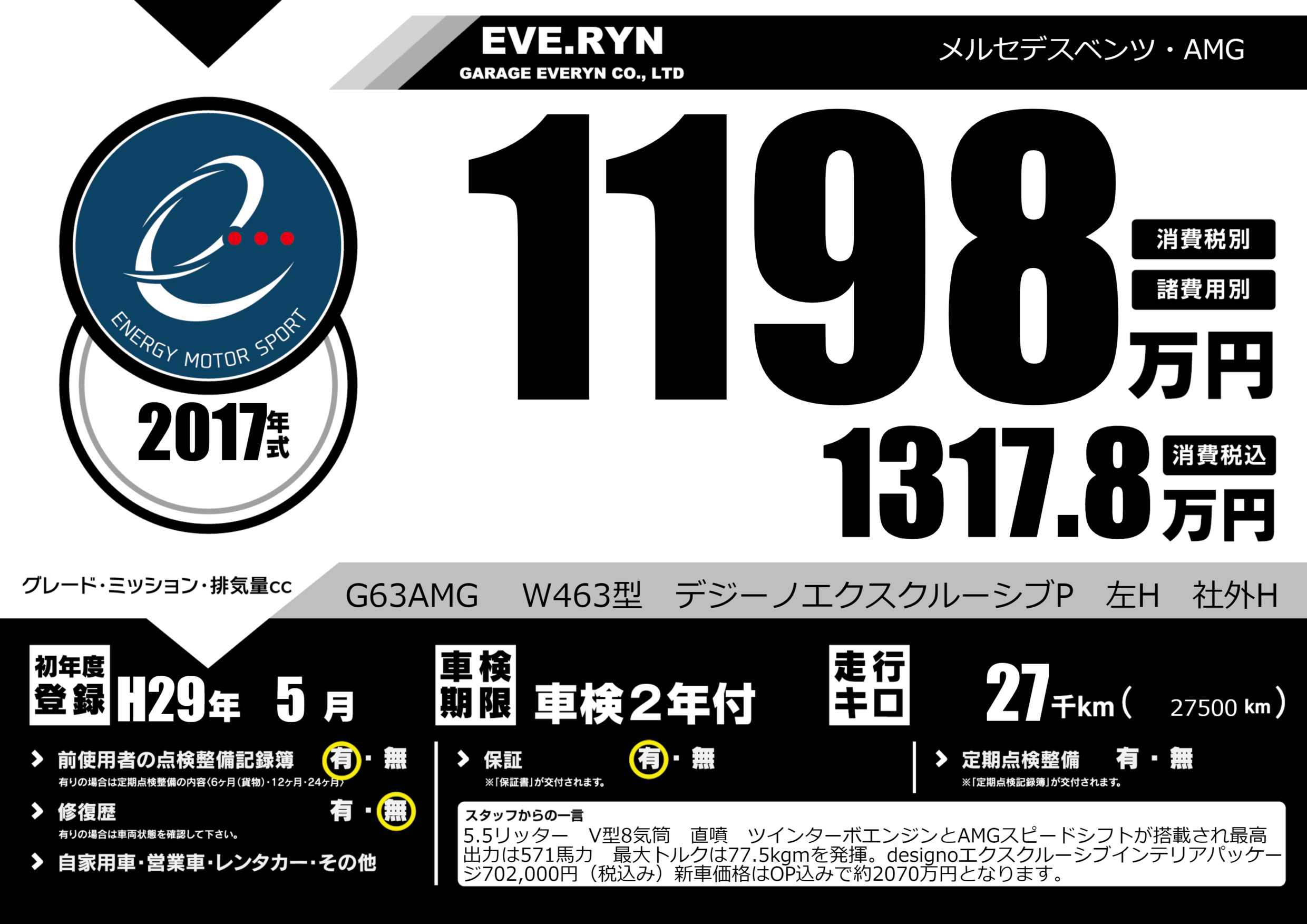 | 車名 | メルセデスベンツ・AMG | グレード ミッション 排気量 |