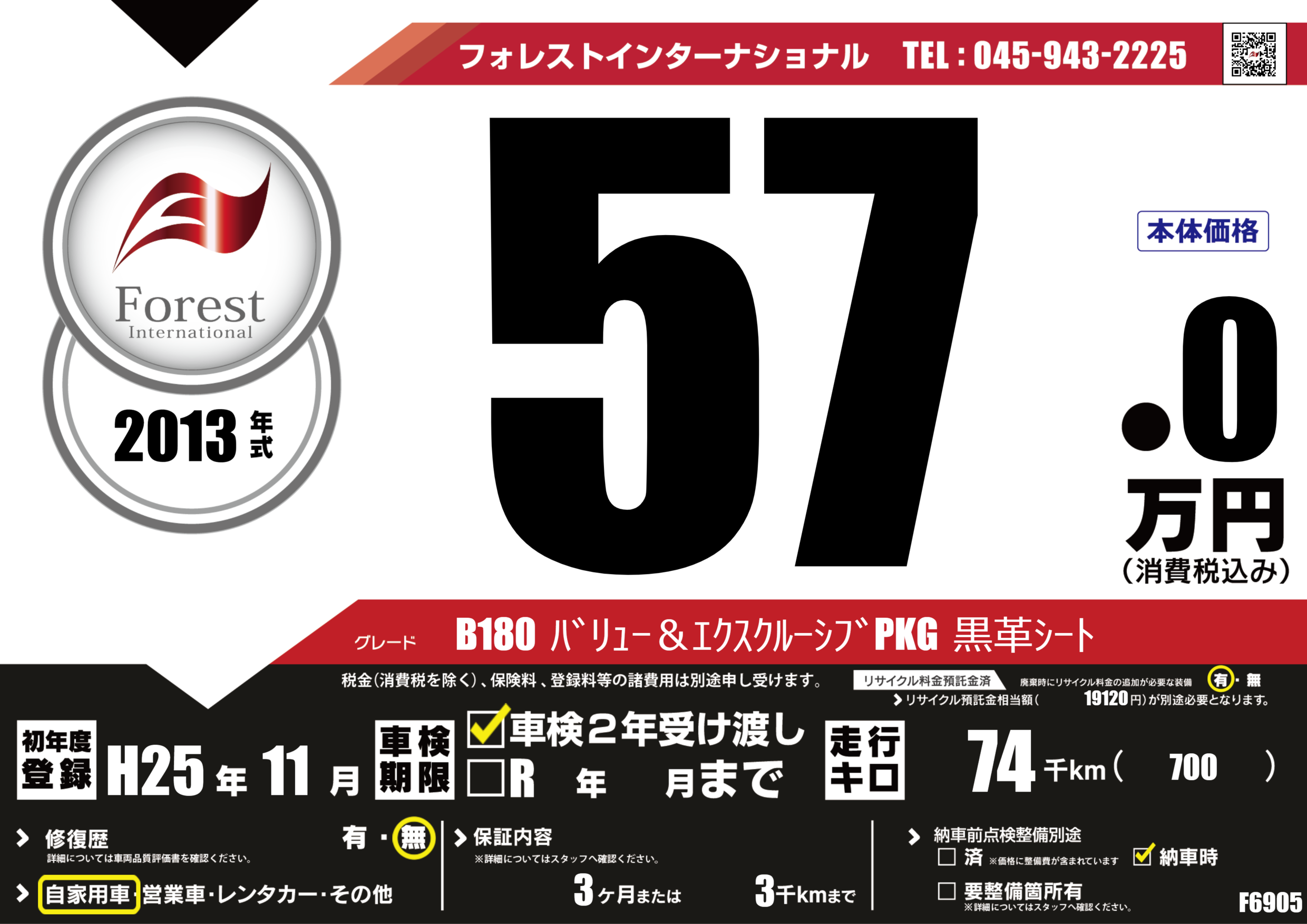 B180 バリュー&エクスクルーシブPKG 黒革シート |