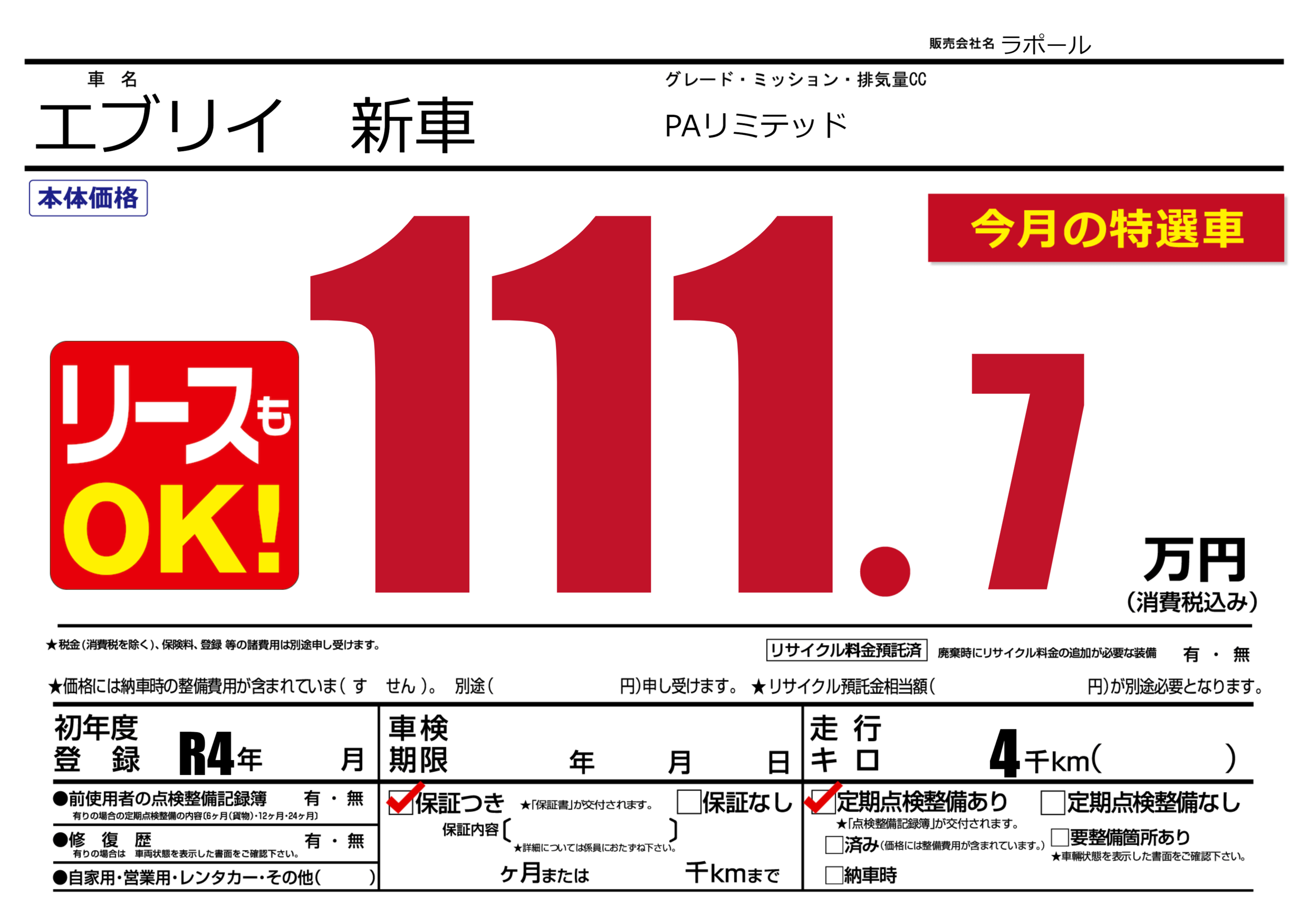 | 初年度登録 | R4年 | ||