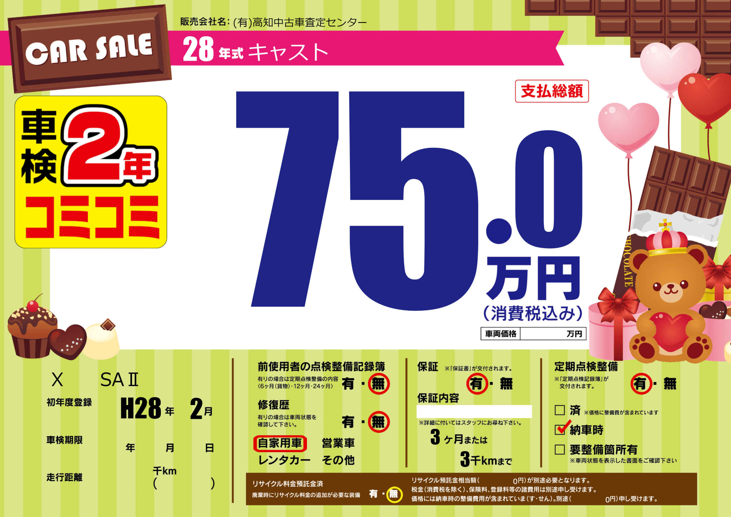 | 定期点検整備 | 定期点検整備あり 納車時あり | ||