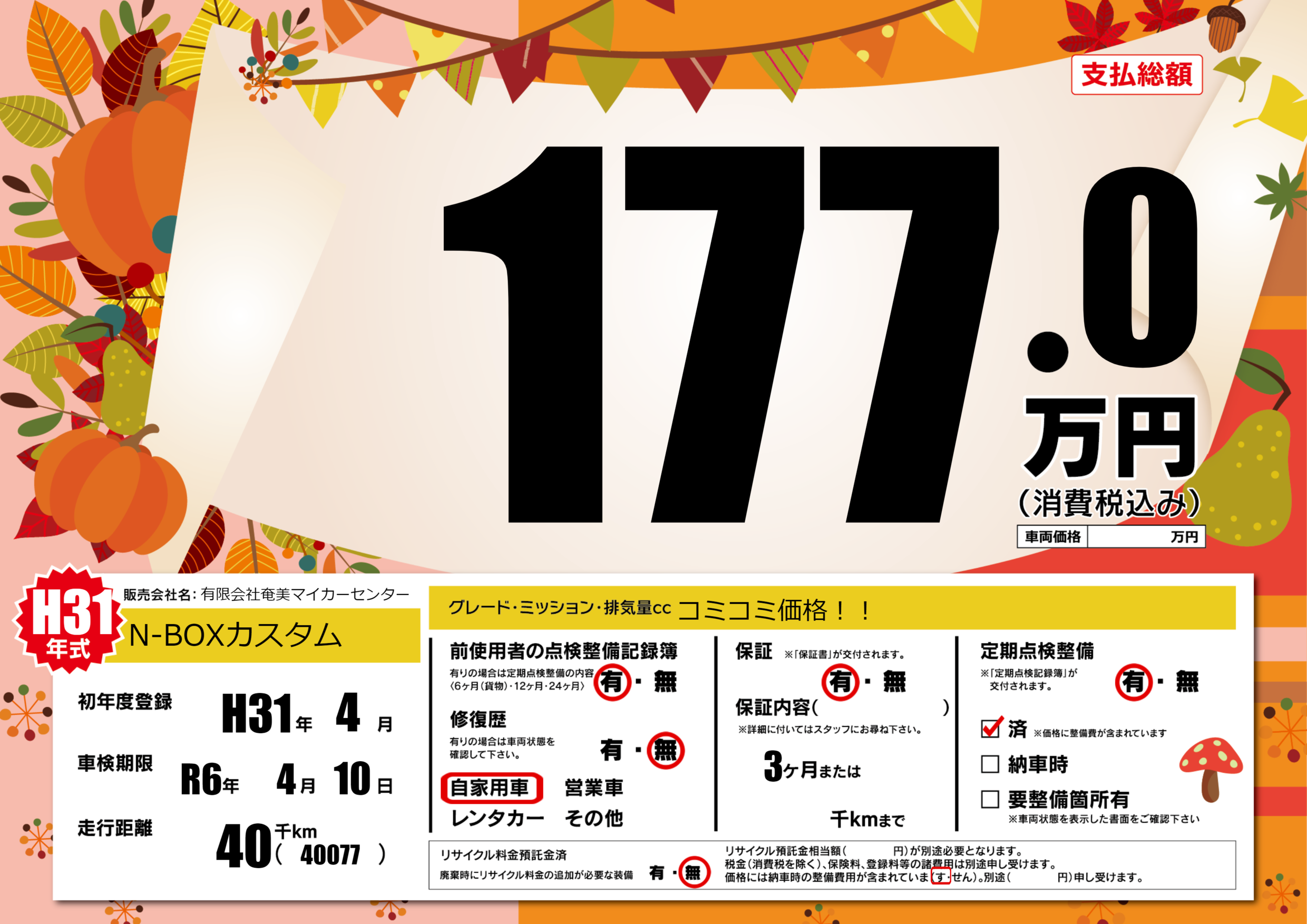 | 定期点検整備 | 定期点検整備あり 定期点検整備済み | ||