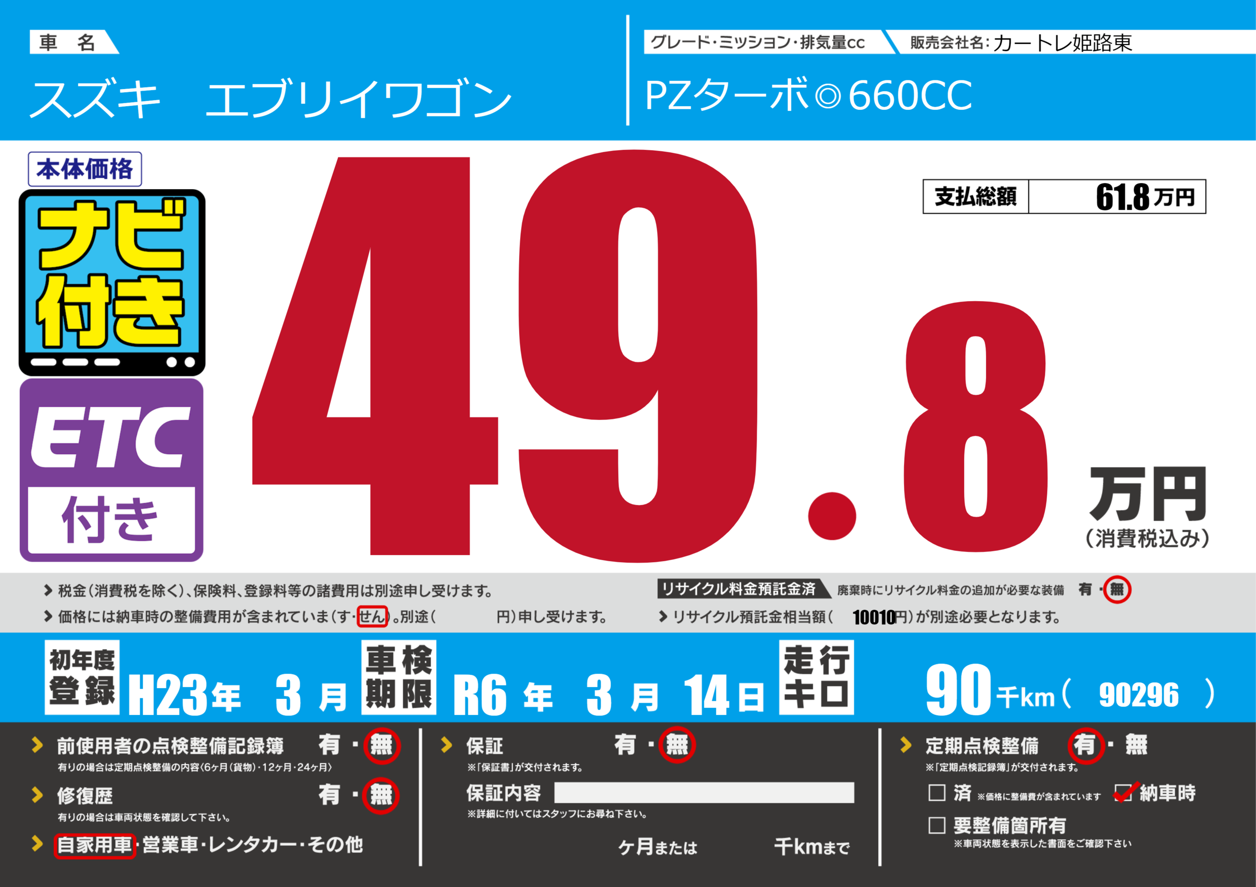 なし | 車検制限 | R6年3月14月 |