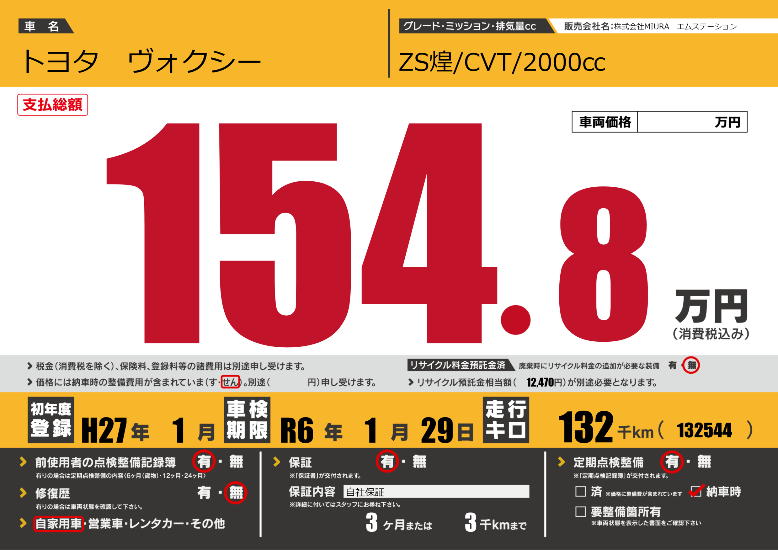 保証付き 保証内容(自社保証) 3ヶ月または3千km |
