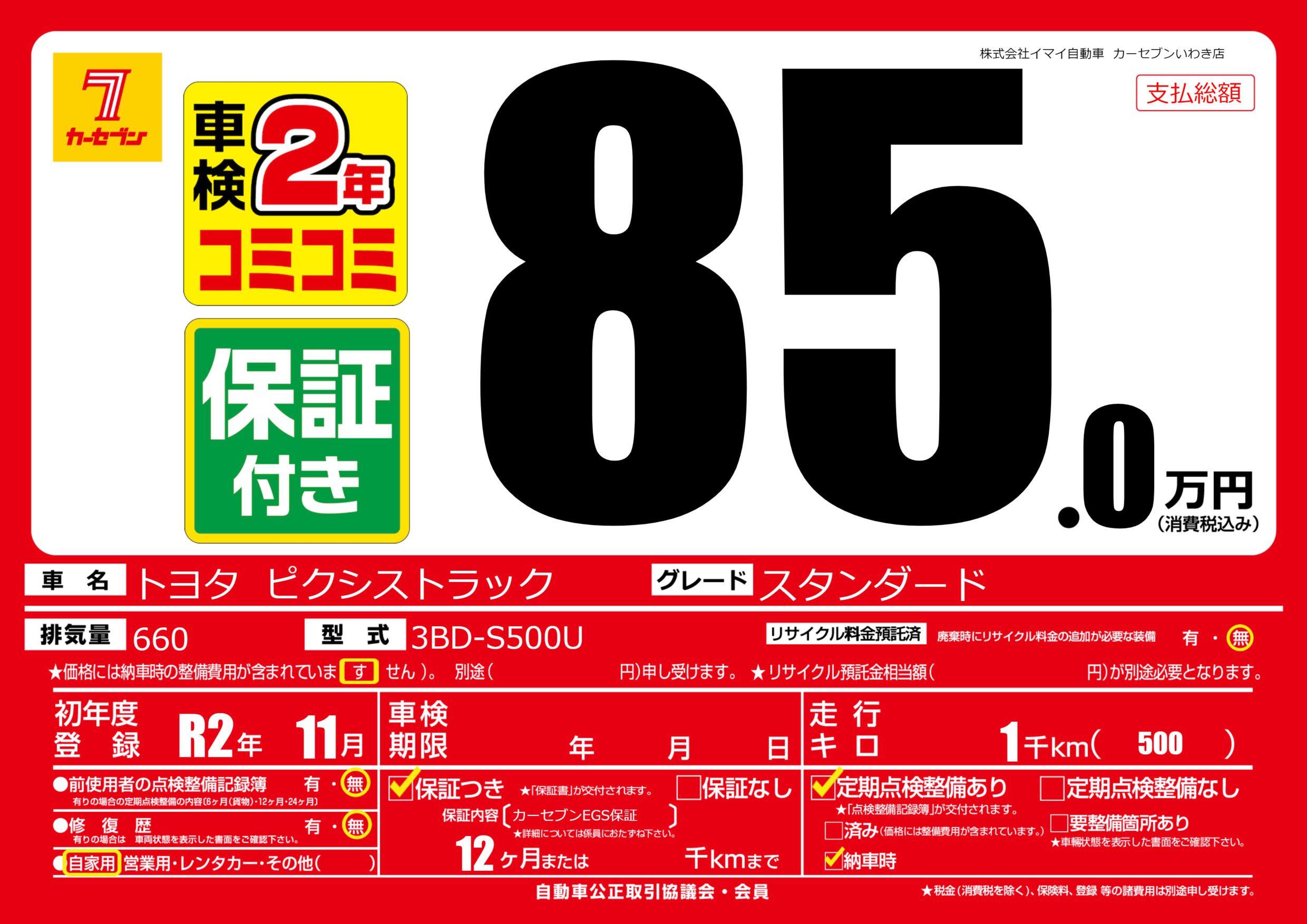 | 定期点検整備 | 定期点検整備あり 納車時あり | ||
