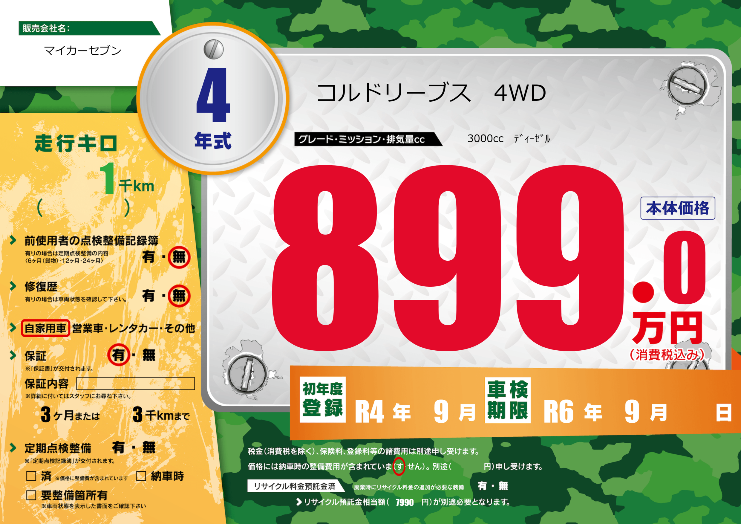| 車検制限 | R6年 9月 - 日 | ||