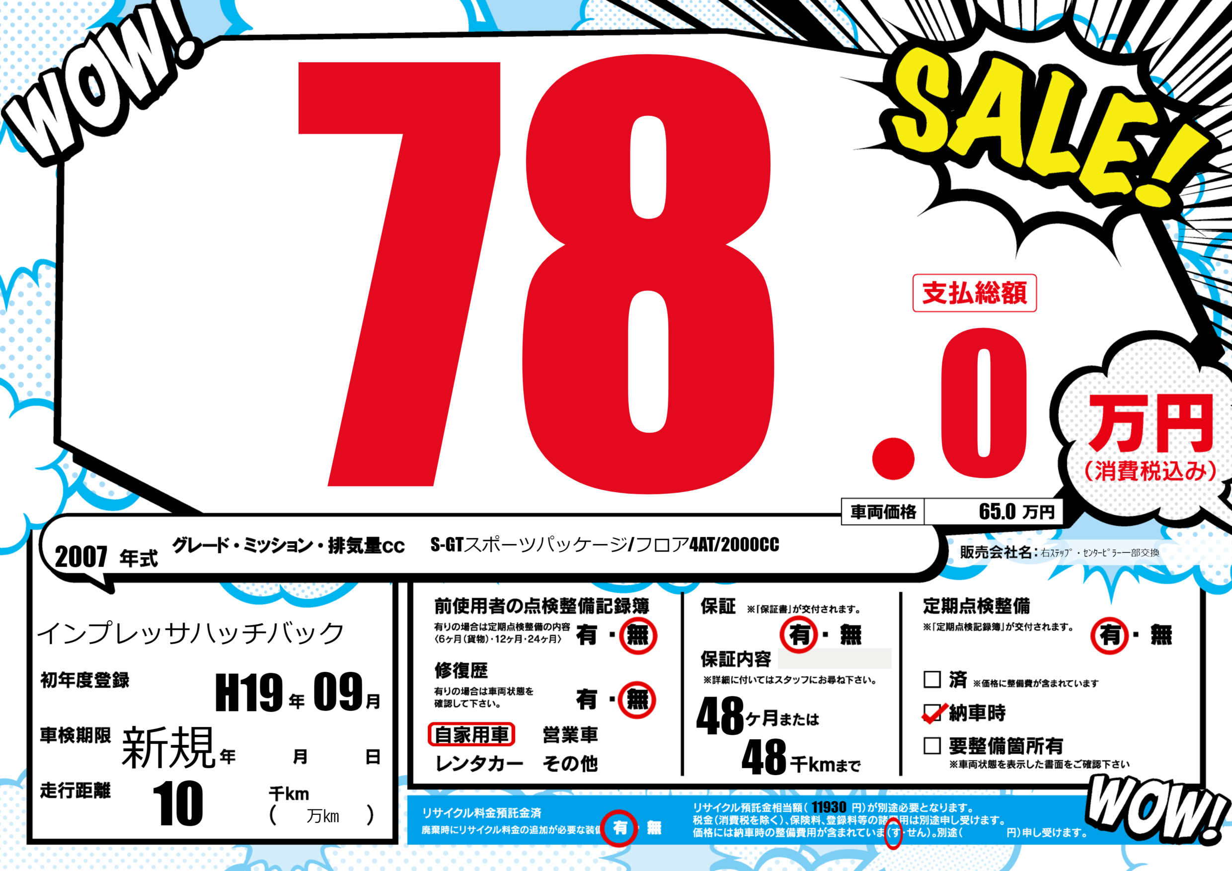 保証付き 保証内容(---) 48ヶ月または(48)千kmまで |