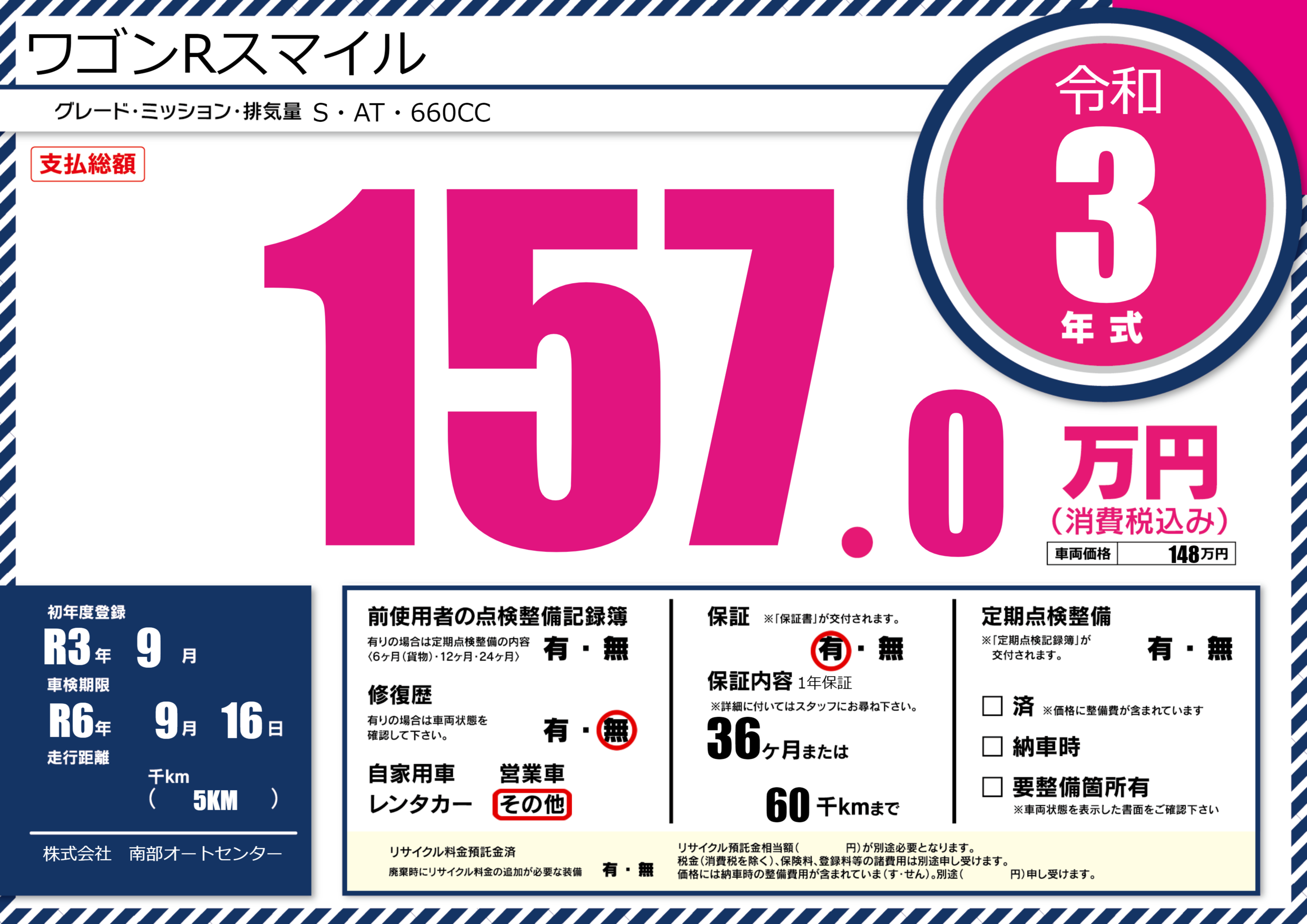 | 走行キロ | - | 初年度登録 | R3年9月 |