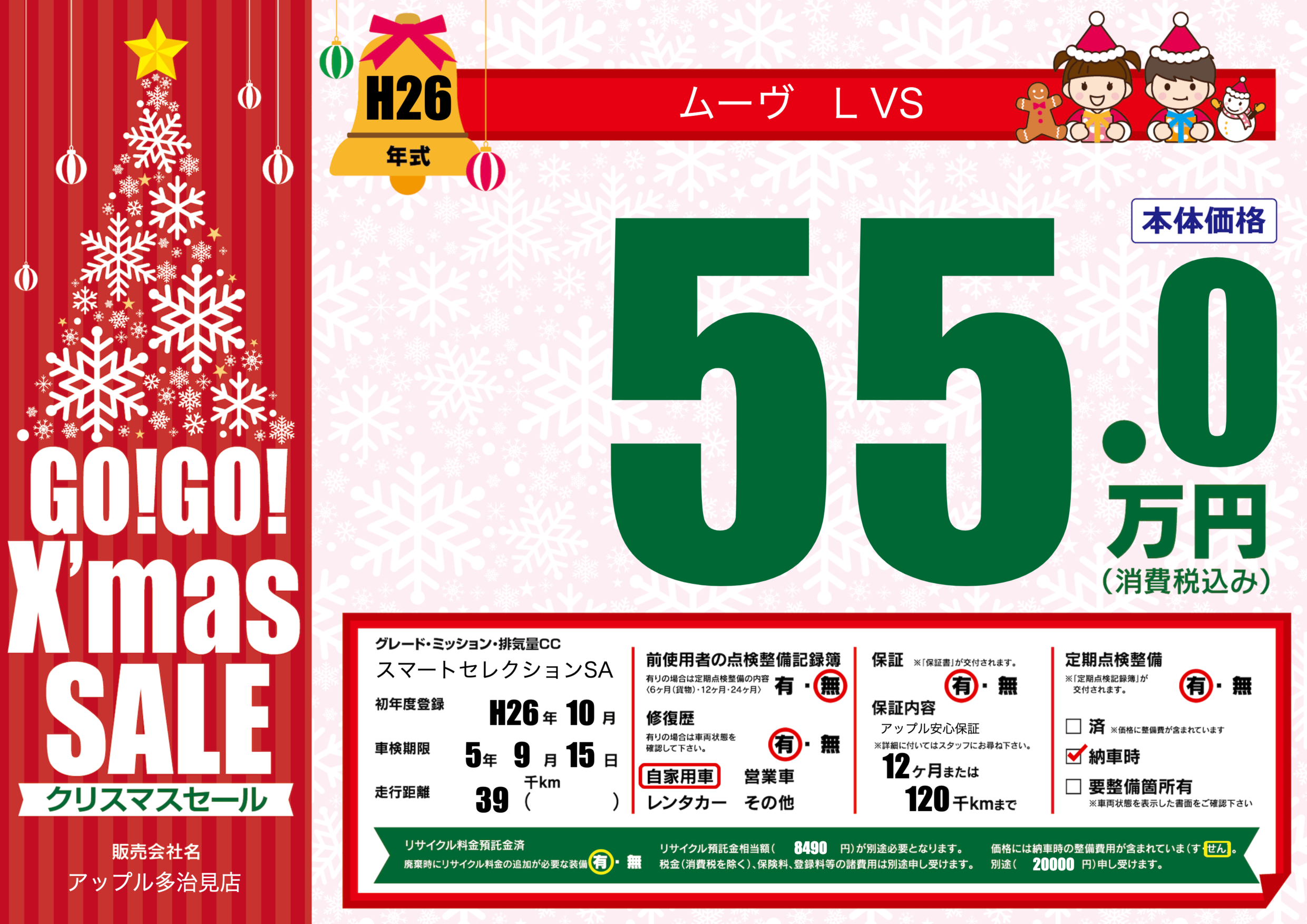 保証付き 保証内容(アップル安心保証) 12ヶ月または(120)千kmまで |