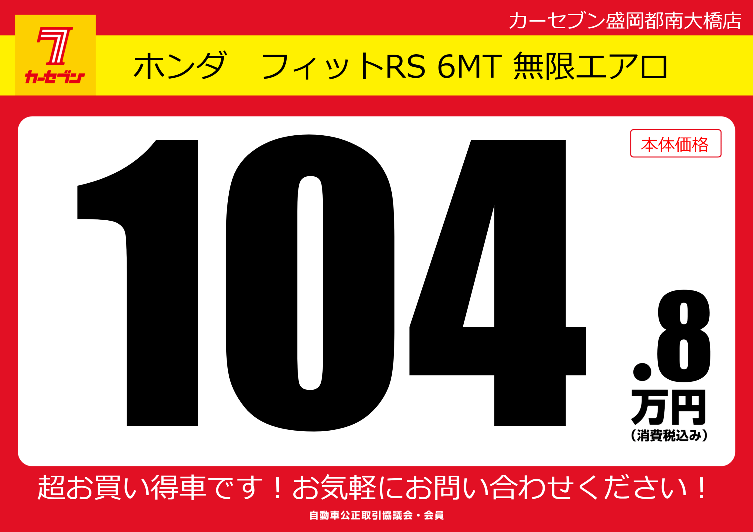 | 車名 | ホンダ フィットRS 6MT 無限エアロ | グレード ミッション 排気量 |