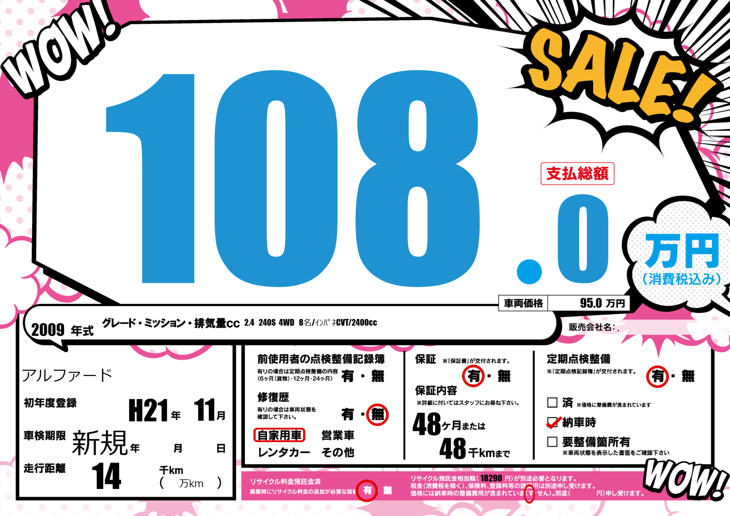 保証付き 保証内容(---) 48ヶ月または(48)千kmまで |