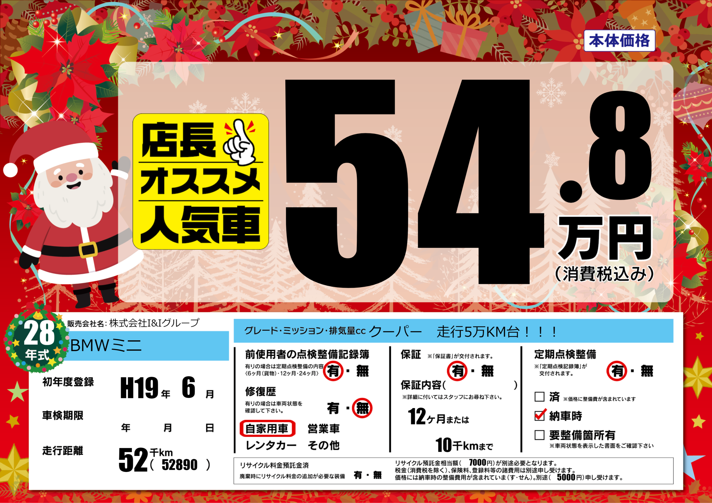 クーパー 走行5万KM台!!! |