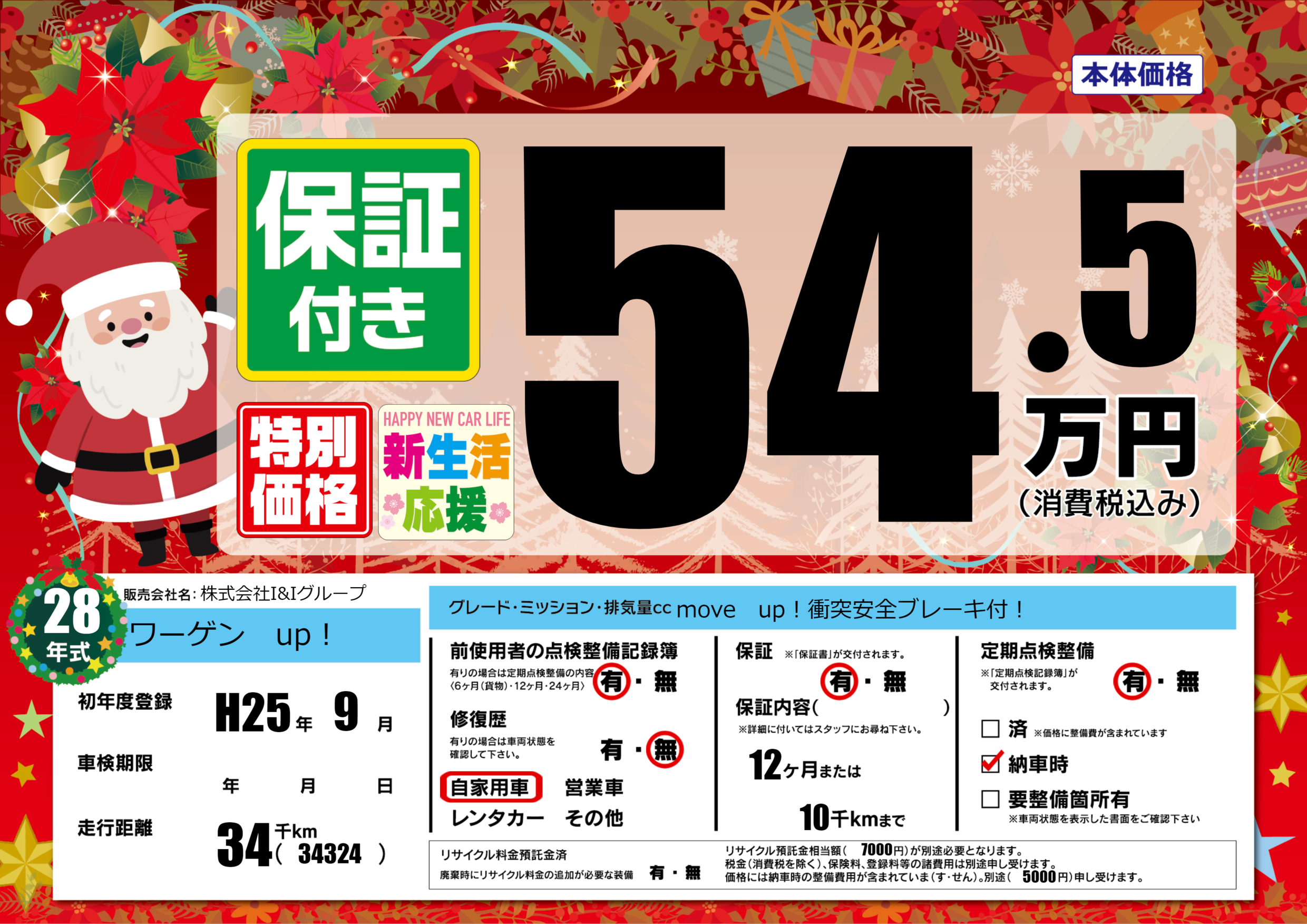 | 走行キロ | 3.4万km | 初年度登録 | H25年9月 |