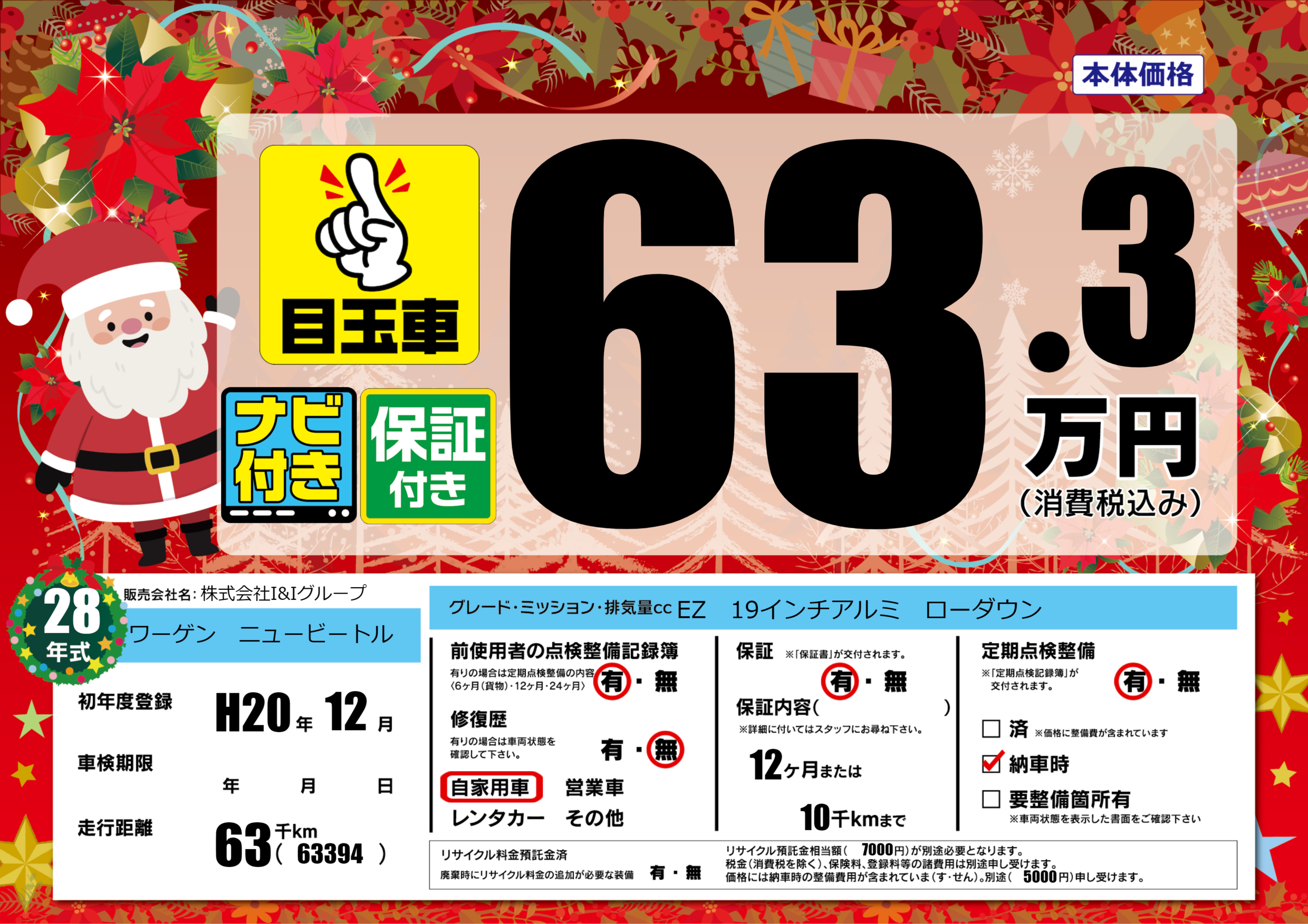 | 定期点検整備 | 定期点検整備あり 納車時あり | ||