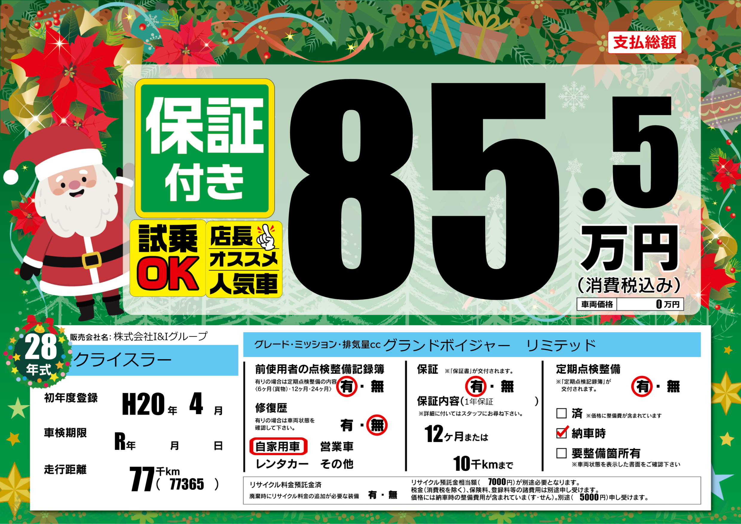 車検制限 | R年---月---月 |