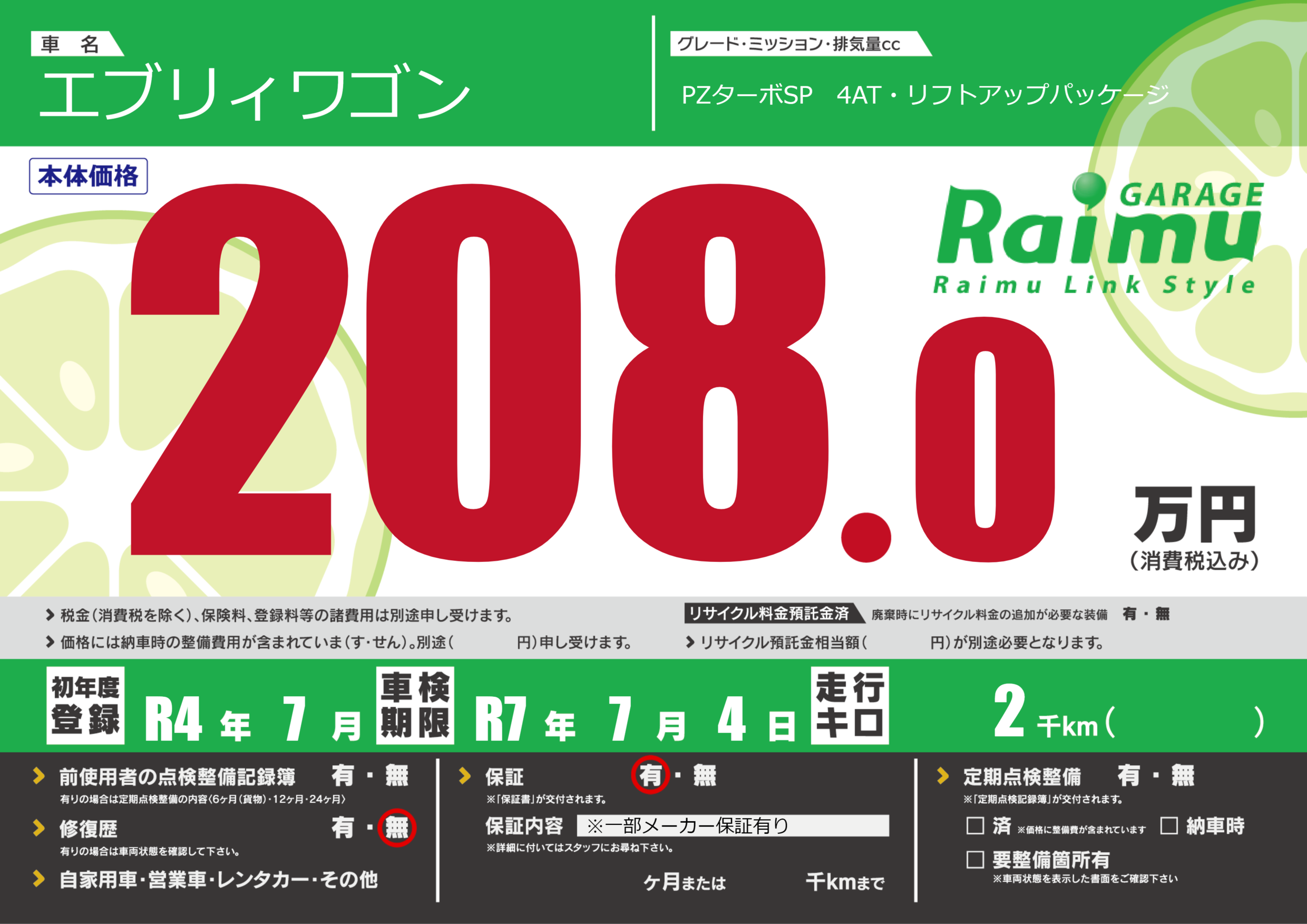 なし | 車検制限 | R7年7月4月 |